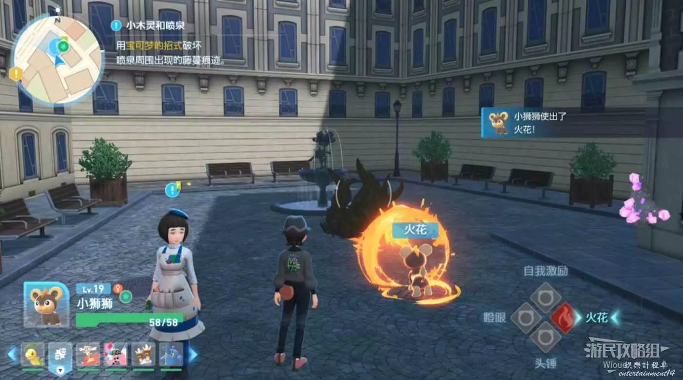 和不遠處的NPC互動,讓寶可夢用火屬性招式攻擊冰塊,完成任務。