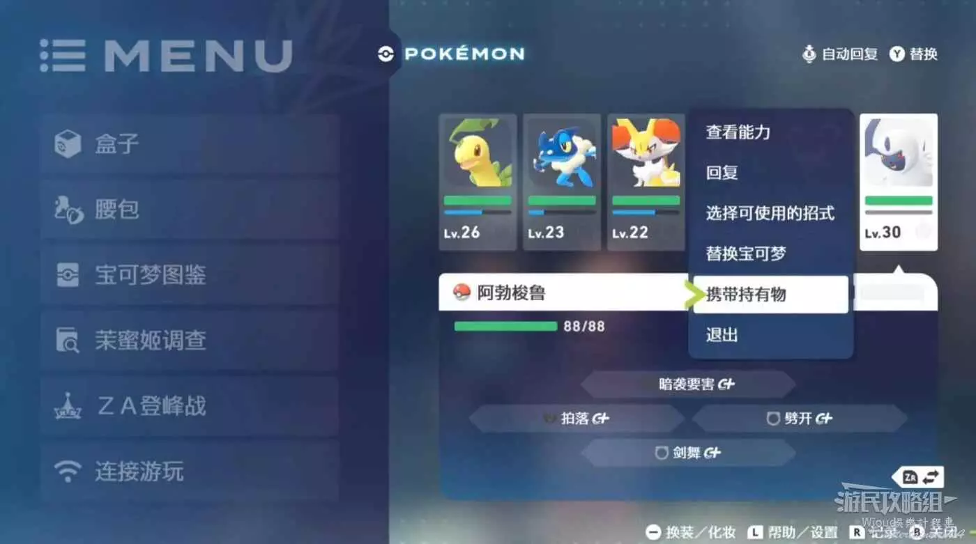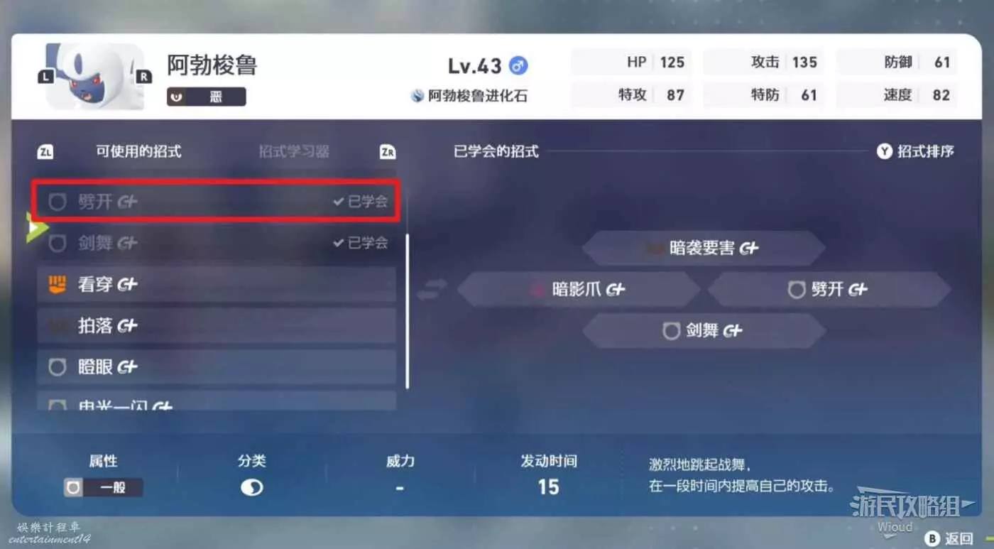 就直接用主線給的【阿勃梭魯】,X打開功能表,選擇【阿勃梭魯】點可使用招式,把劈開放上去。