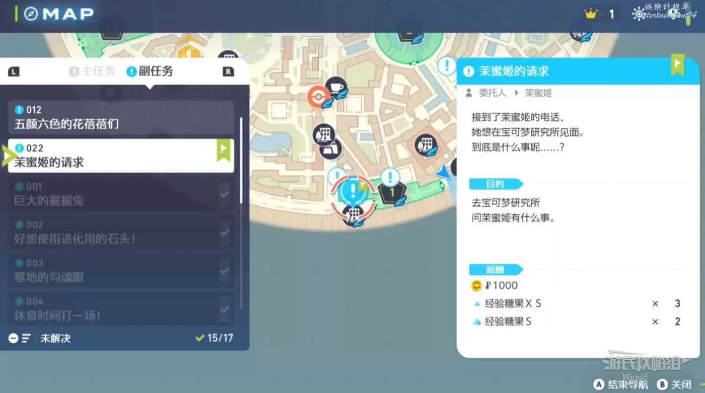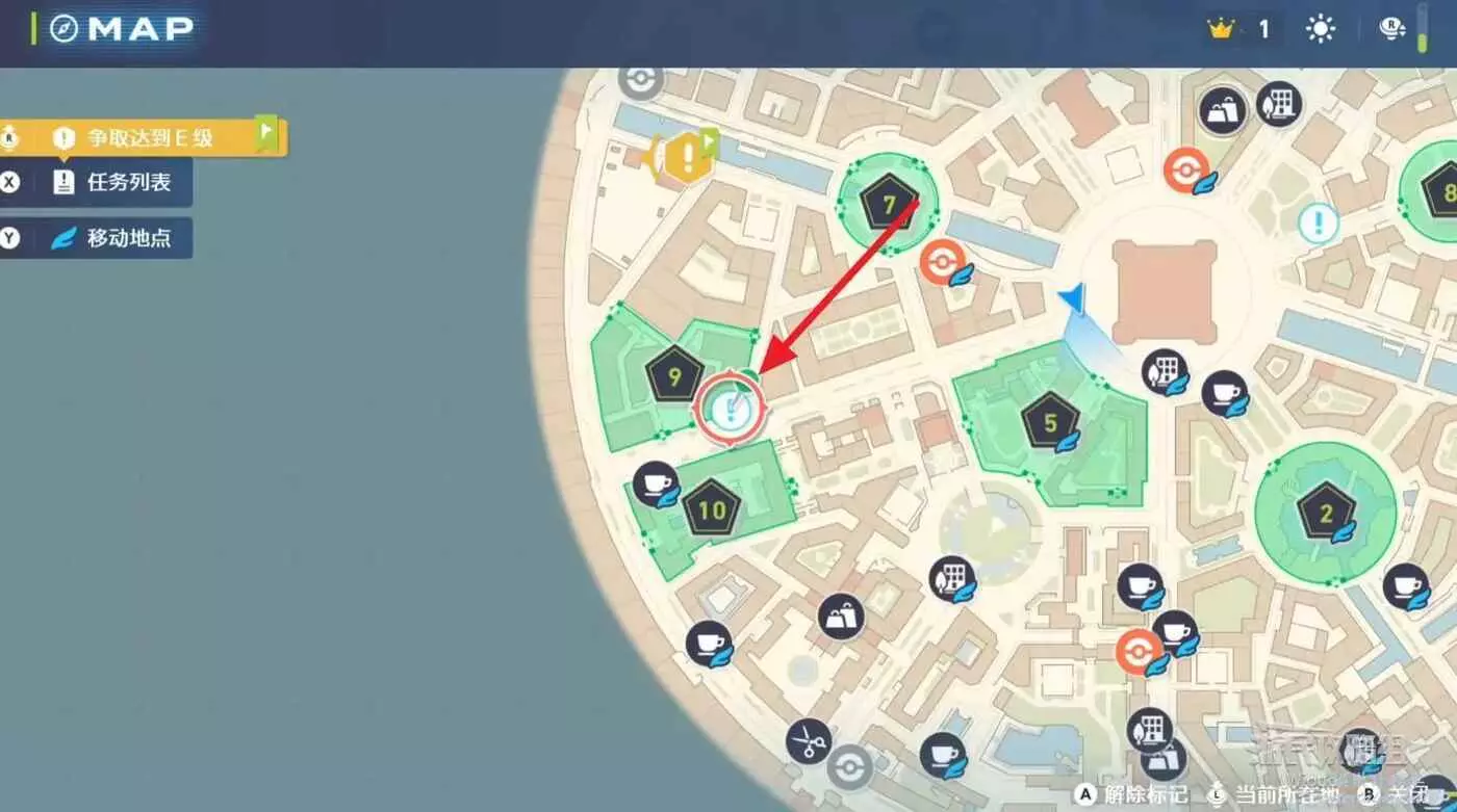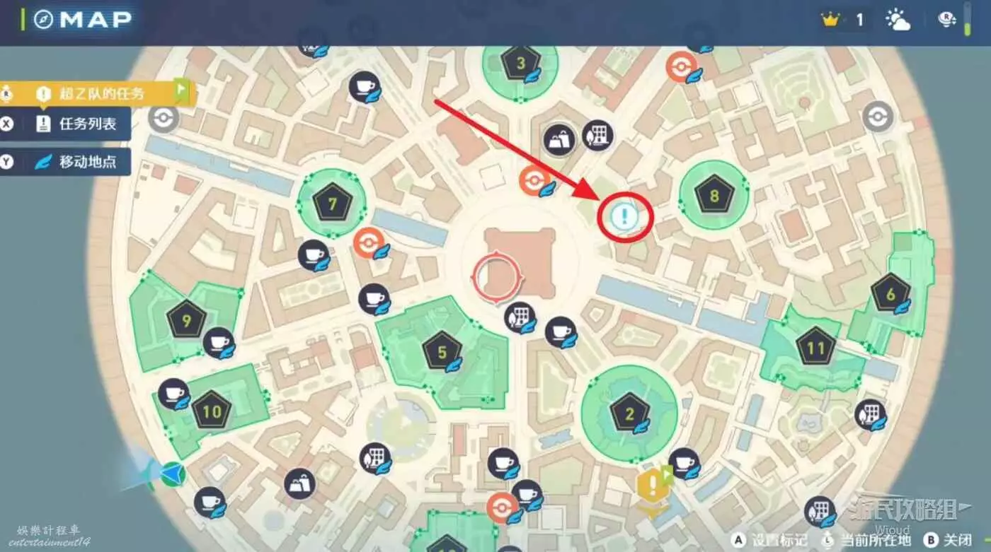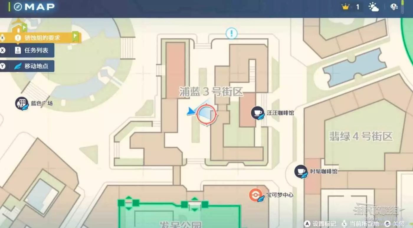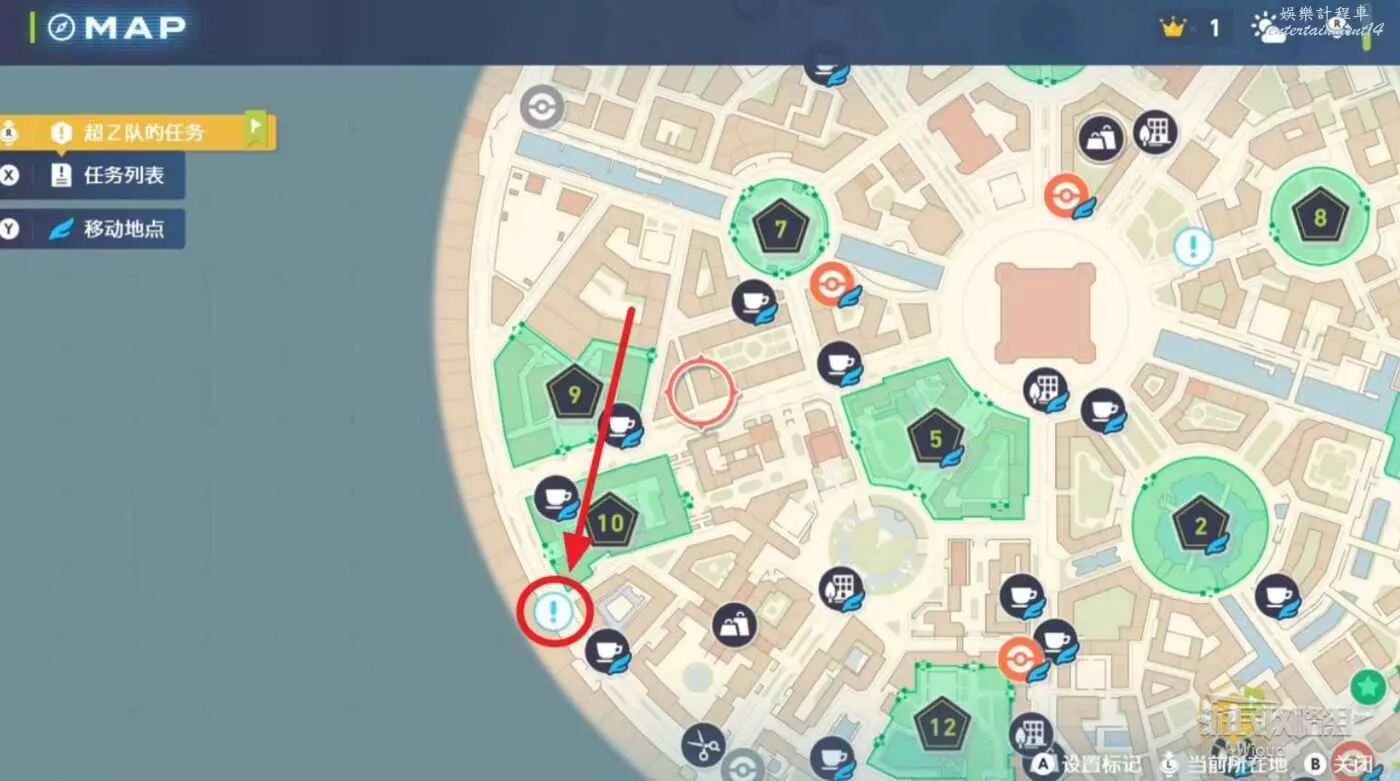 任務位置如下圖所示,提前準備一個帶物理招式的寶可夢。