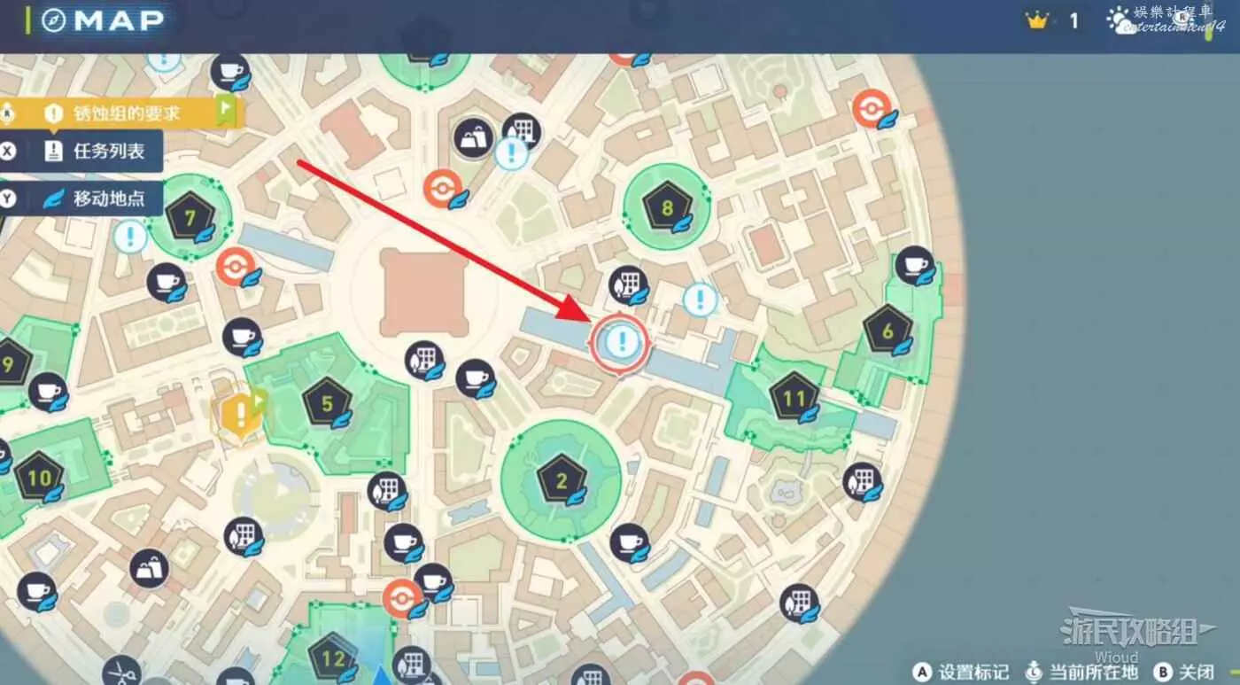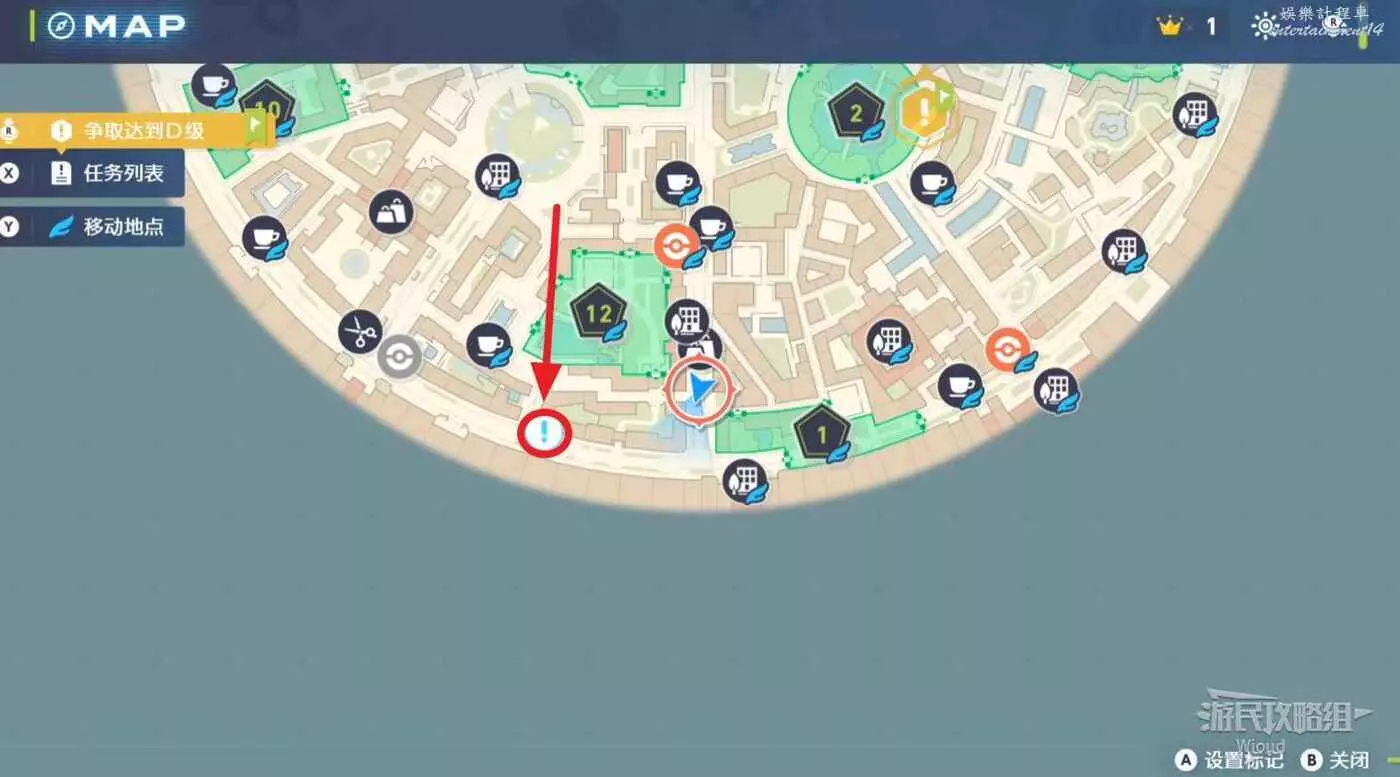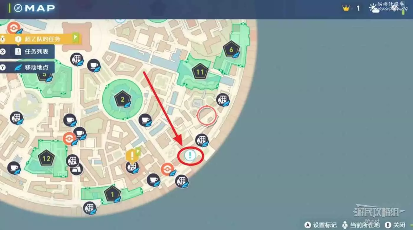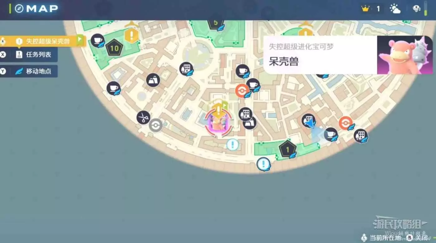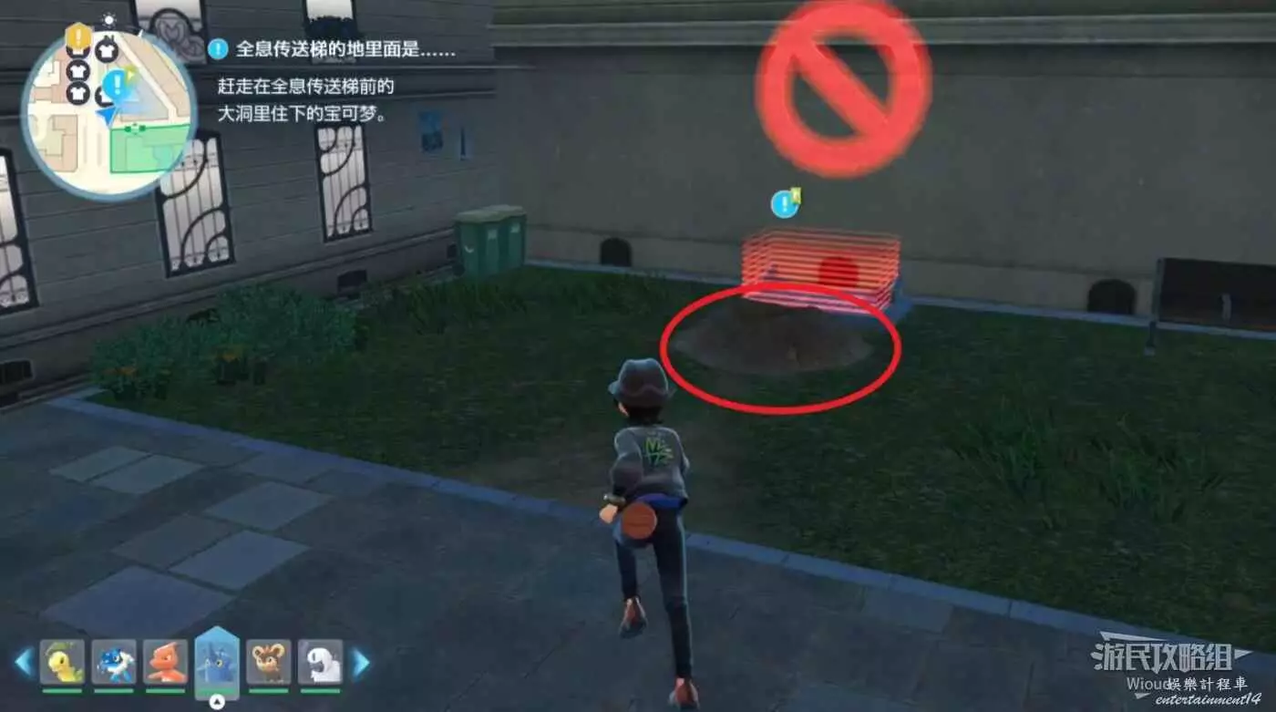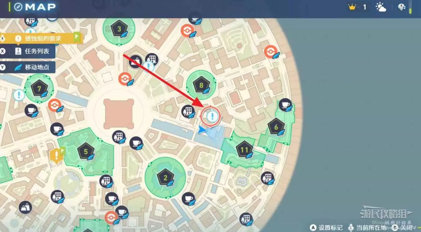 任務位置如下圖所示,提前準備一個帶物理招式的寶可夢。