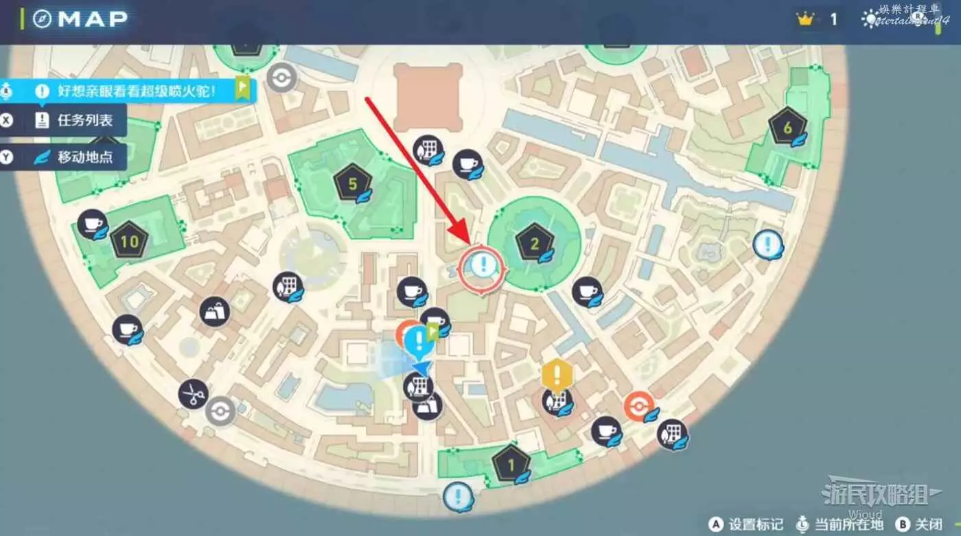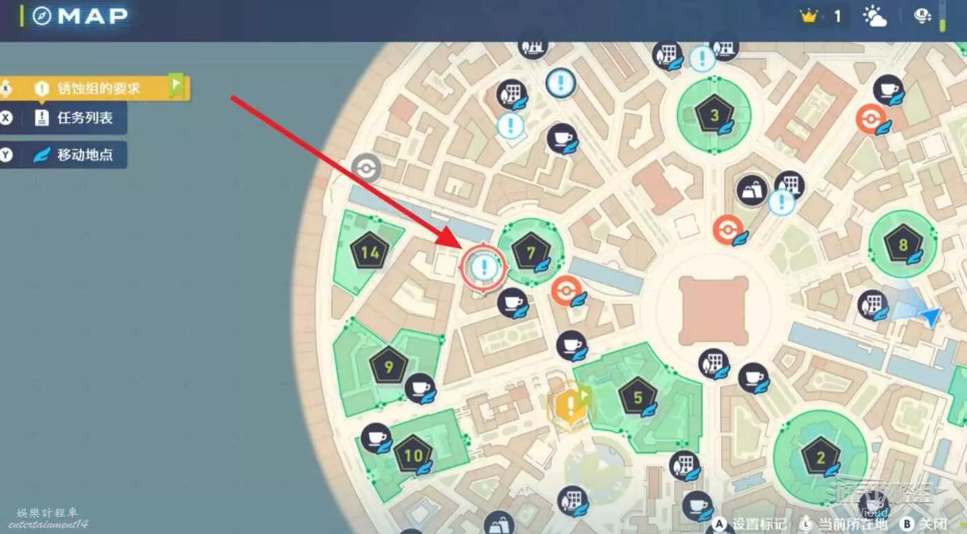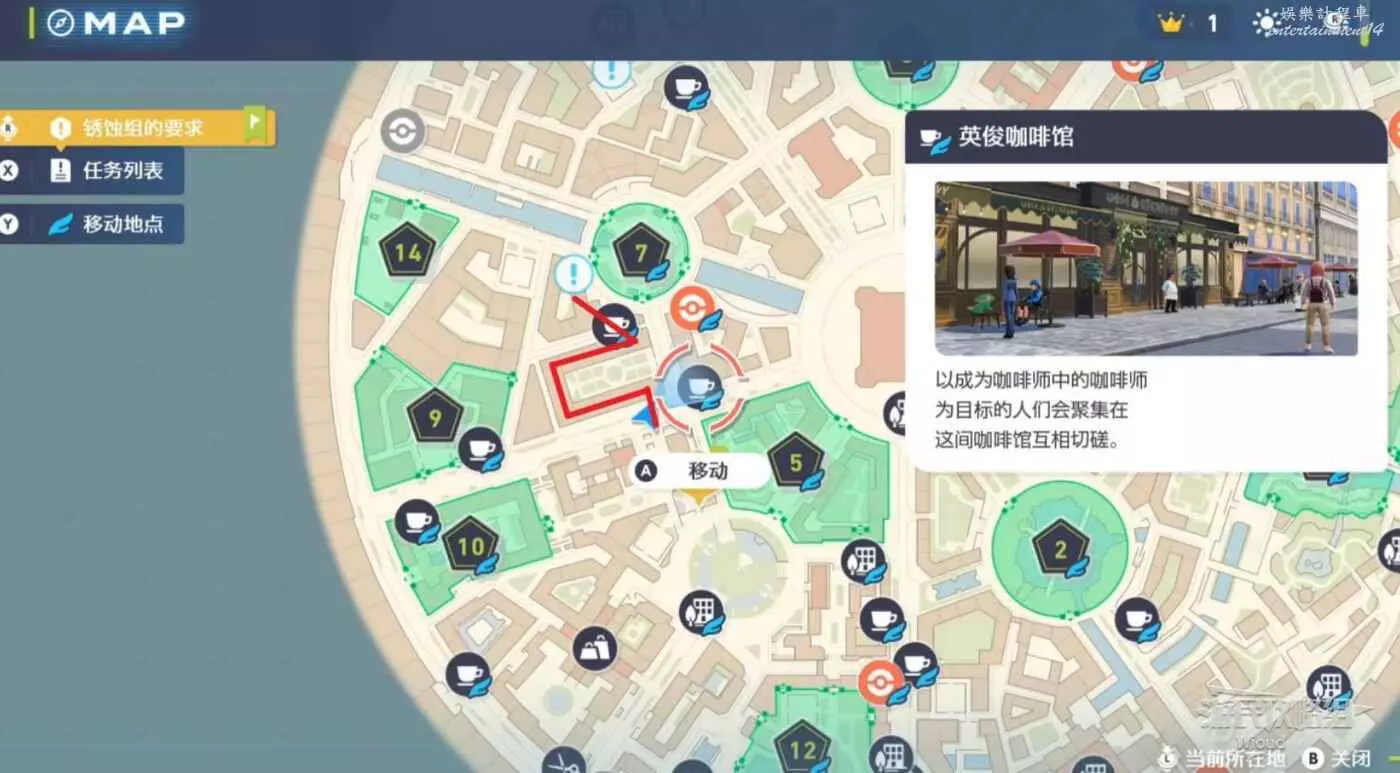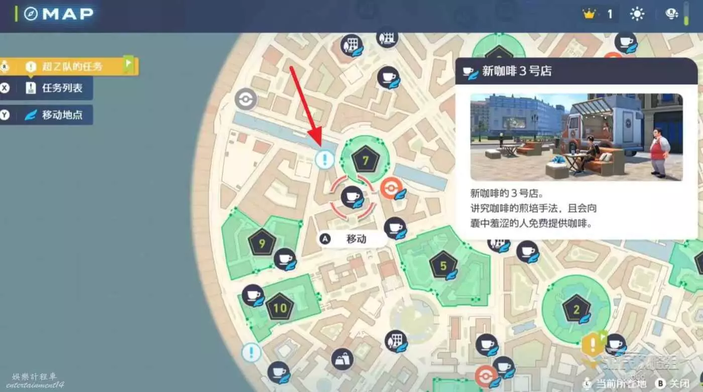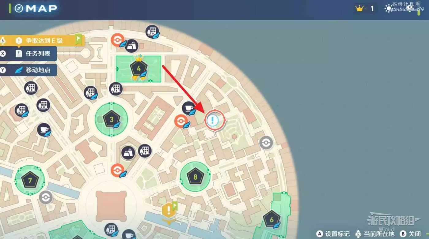 任務位置如下圖所示,提前準備一個帶物理招式的寶可夢。