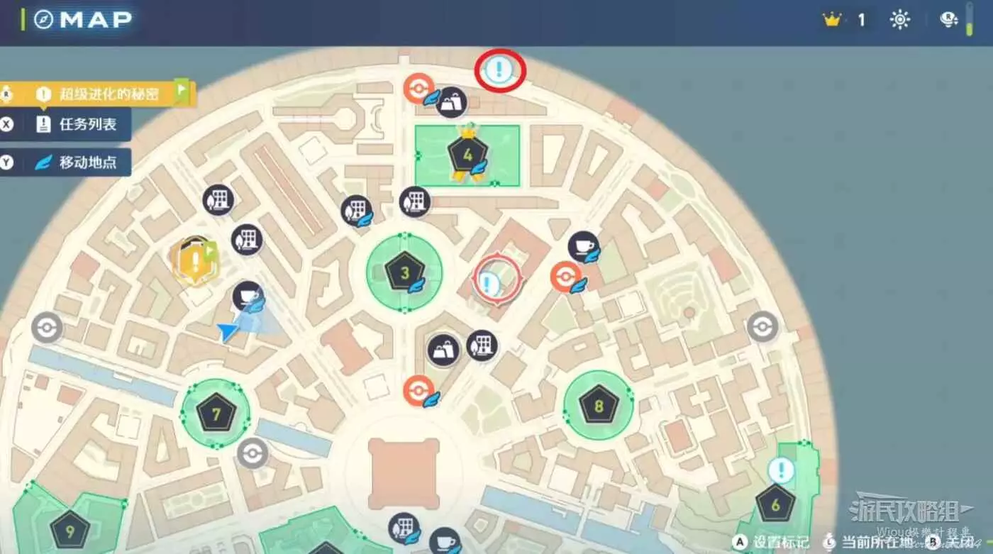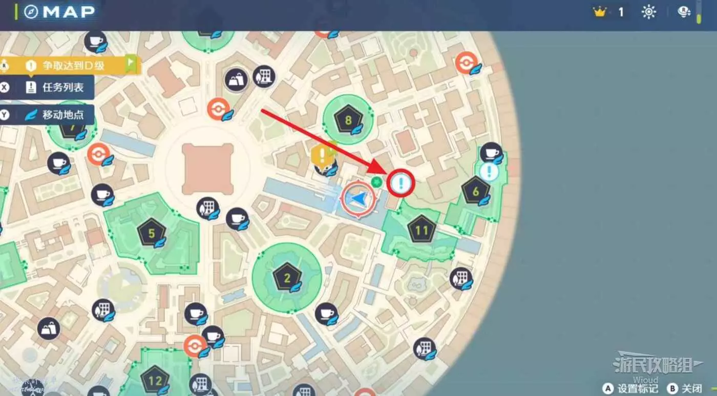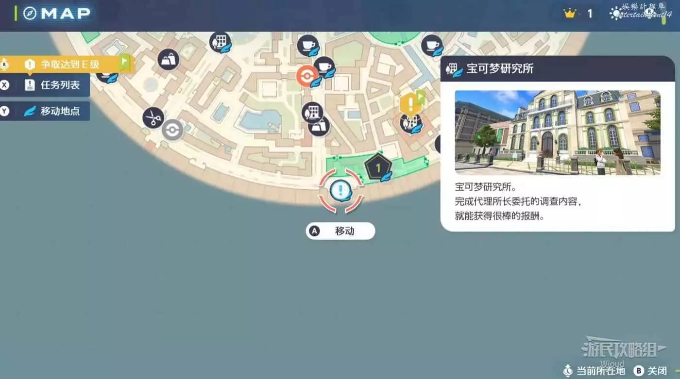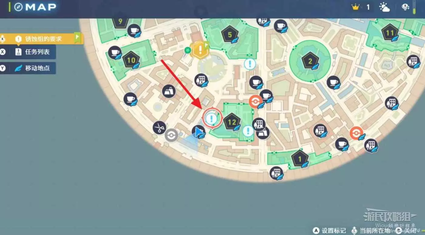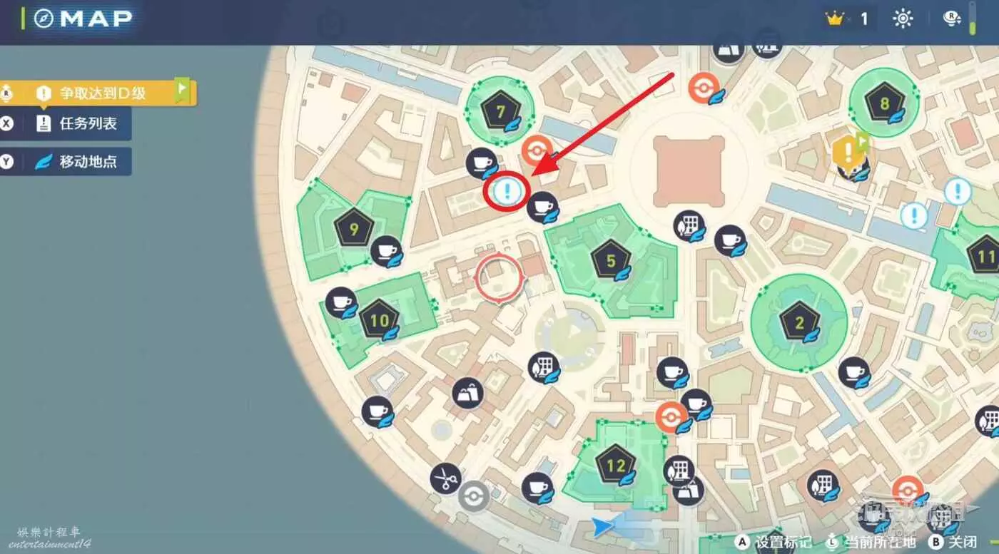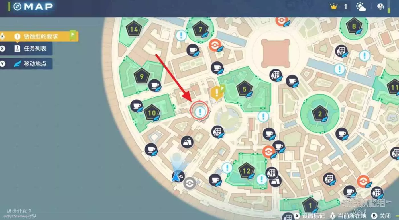 任務位置如下圖所示,提前準備一個帶物理招式的寶可夢。