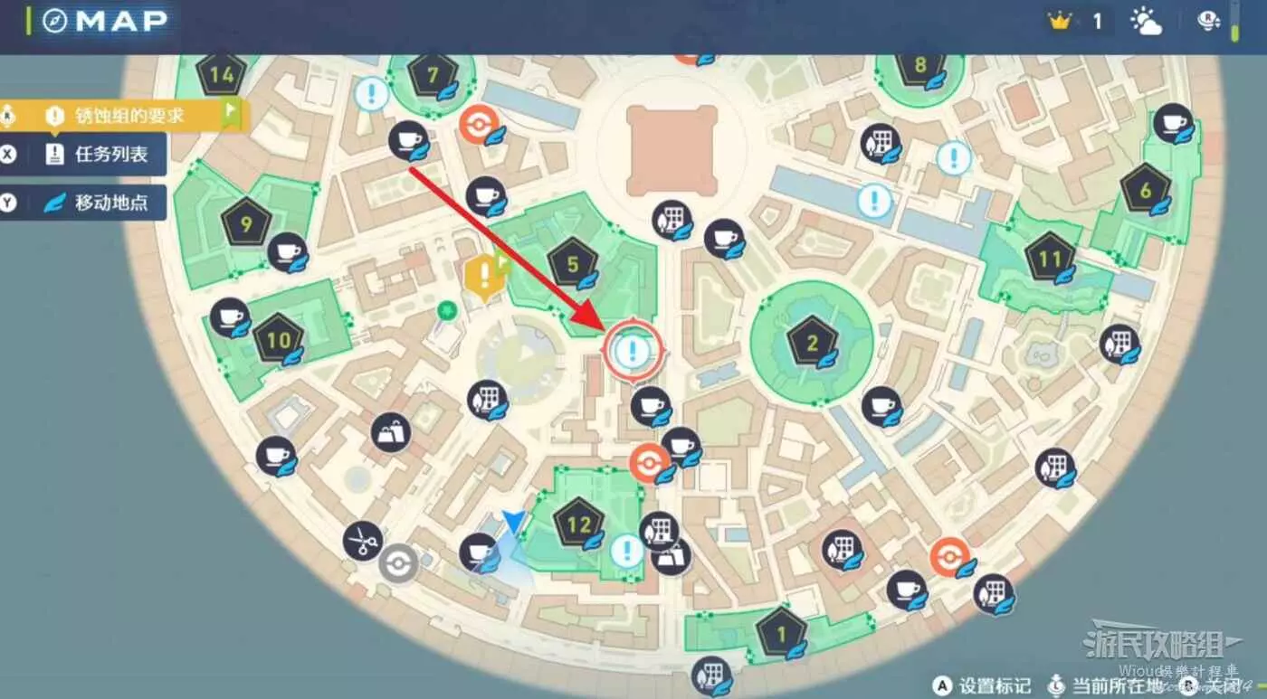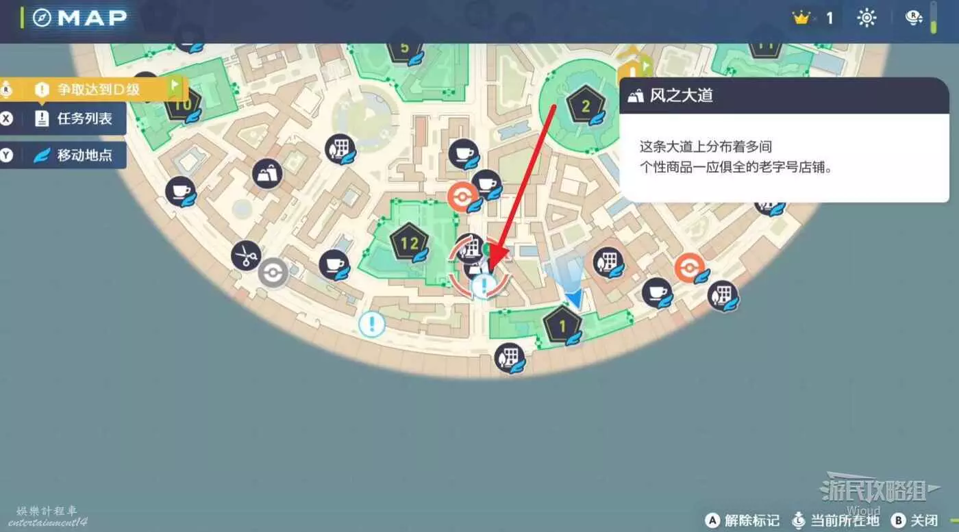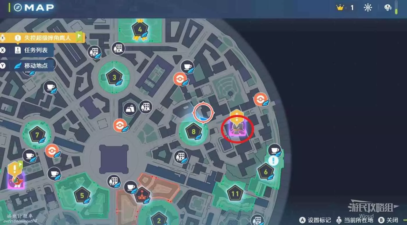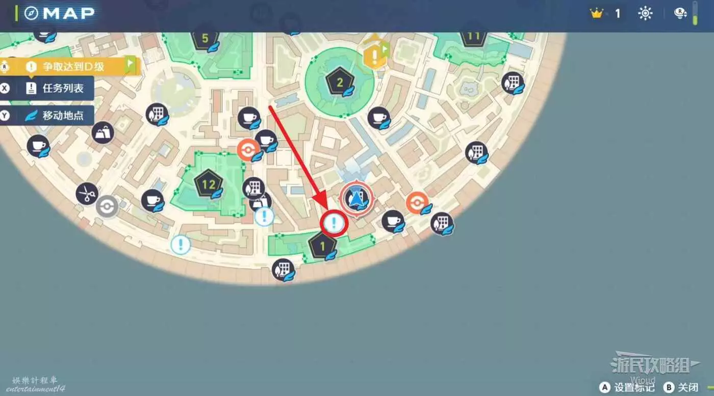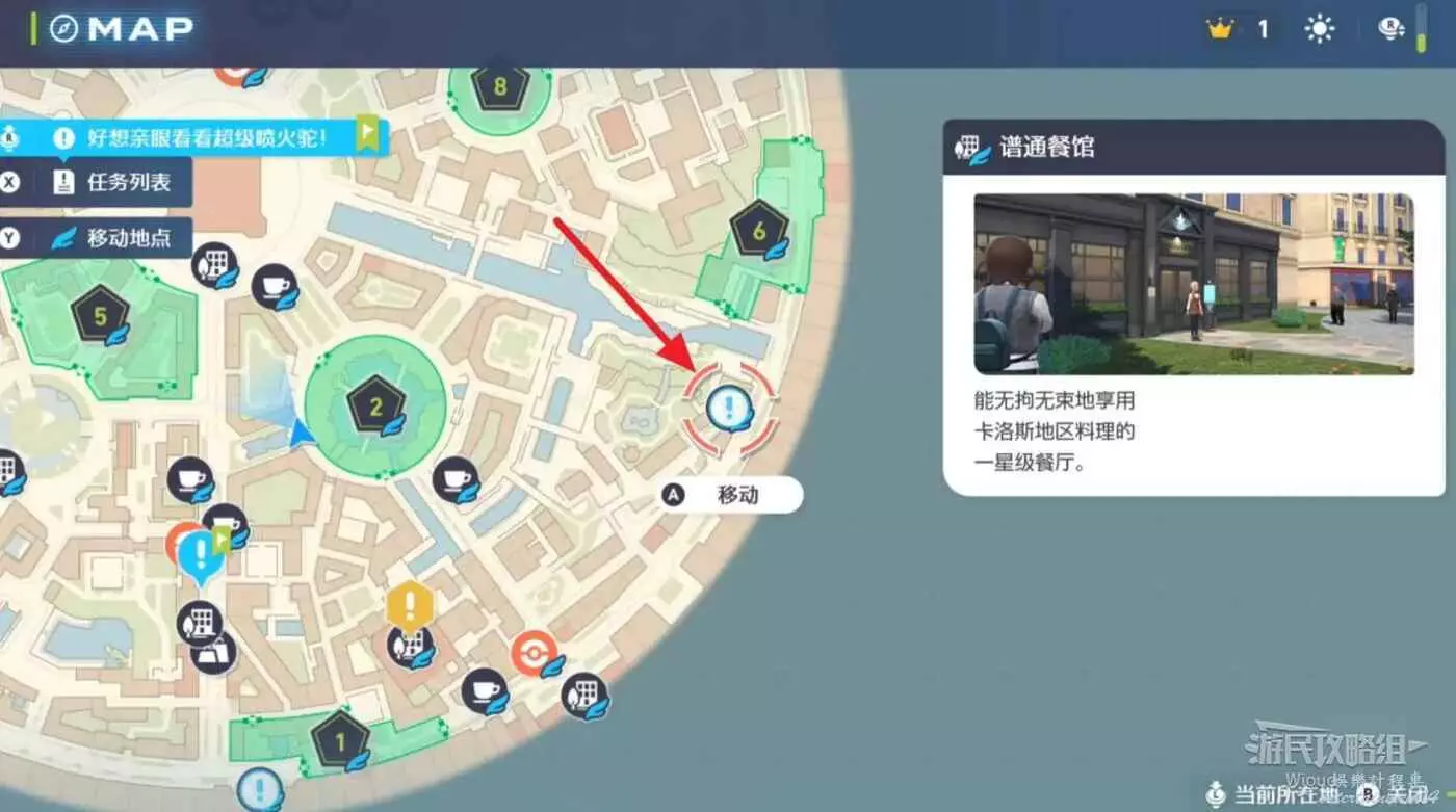 任務位置如下圖所示,提前準備一個帶物理招式的寶可夢。