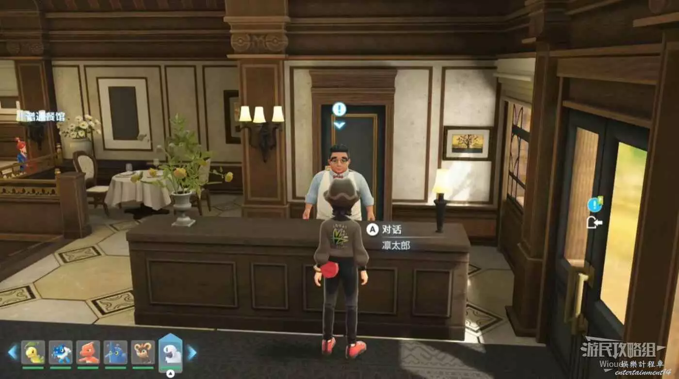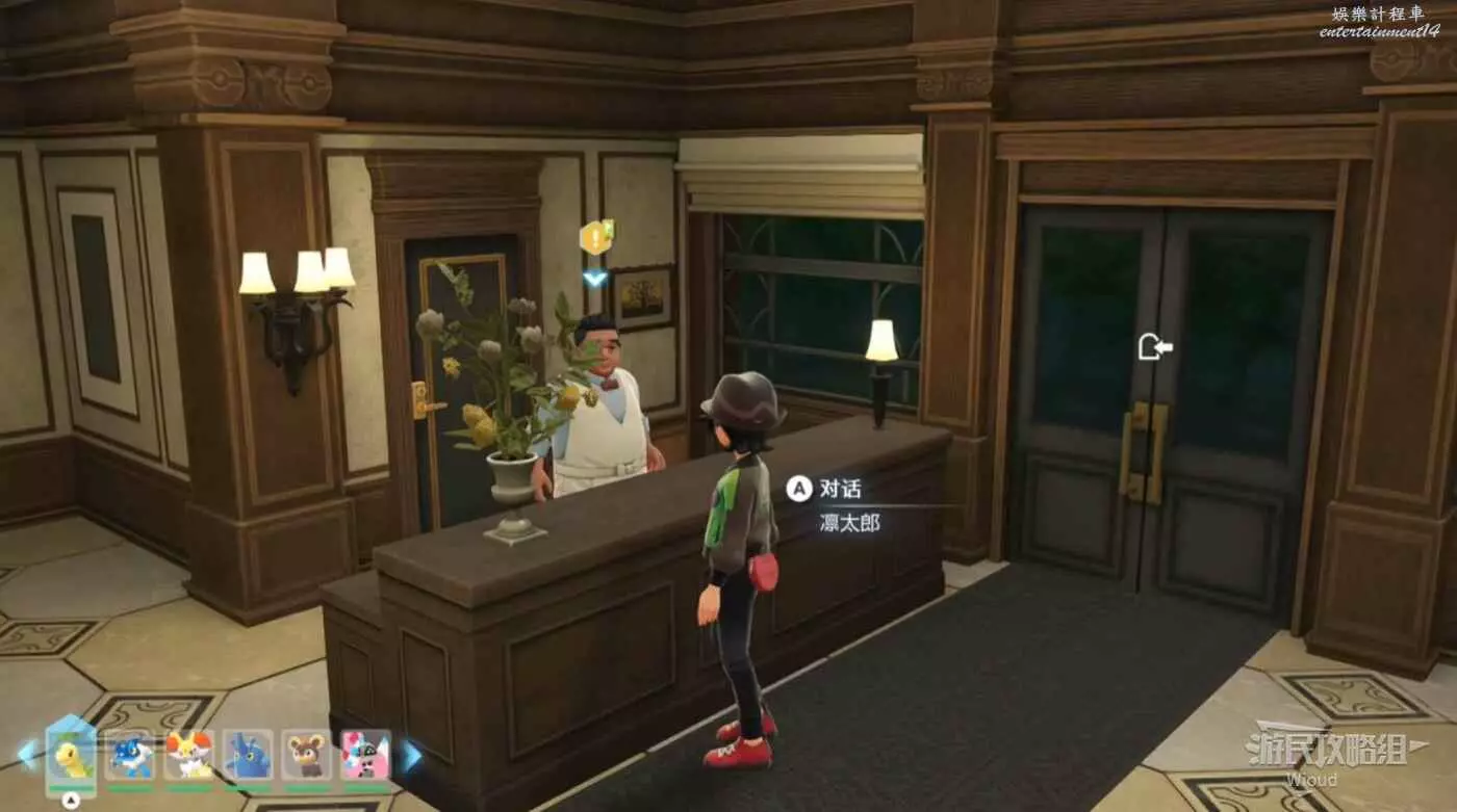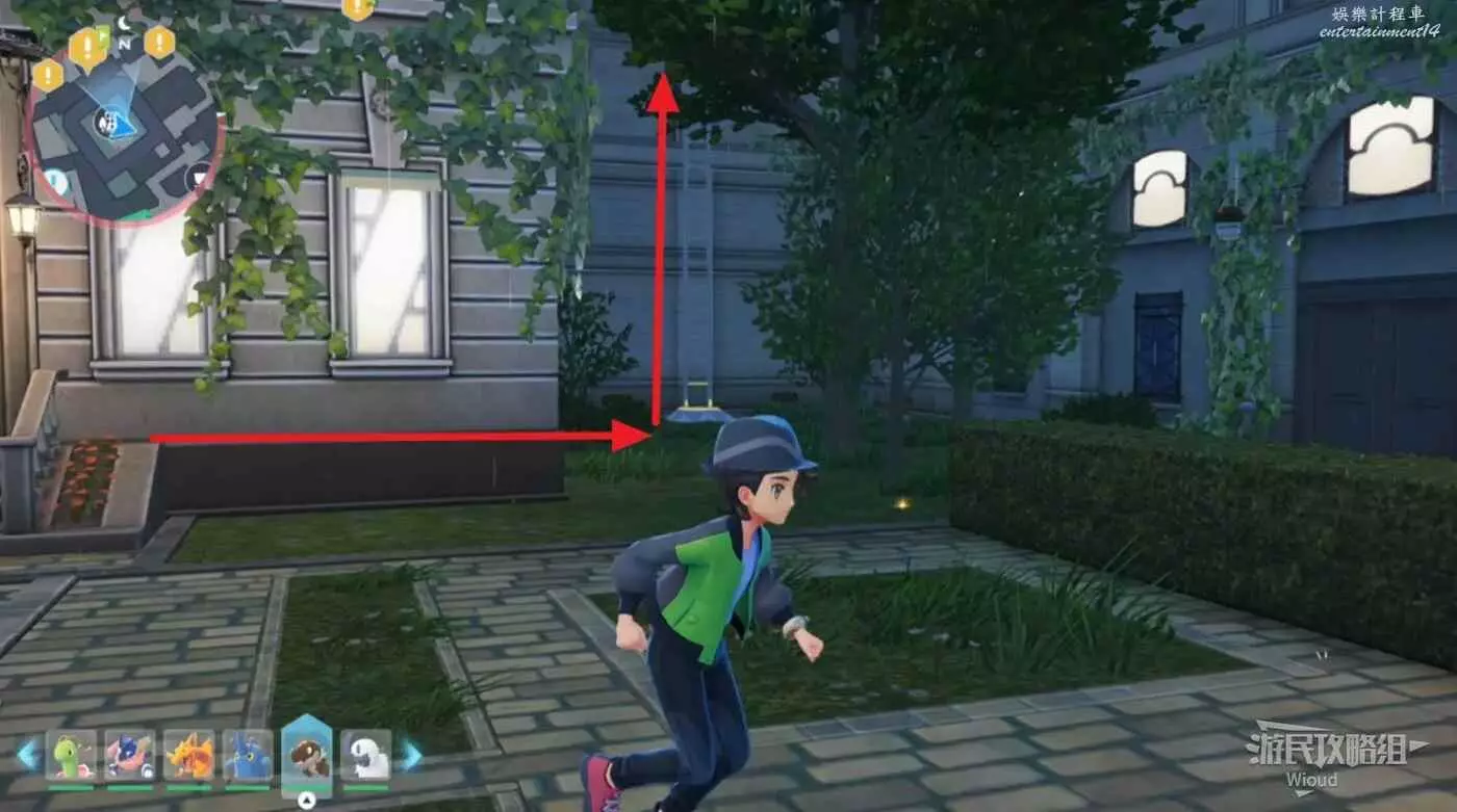 先看著地圖走到指引處,和鎖住的門互動,看到有個鑰匙串寶可夢跑到了地圖左側的房間。
