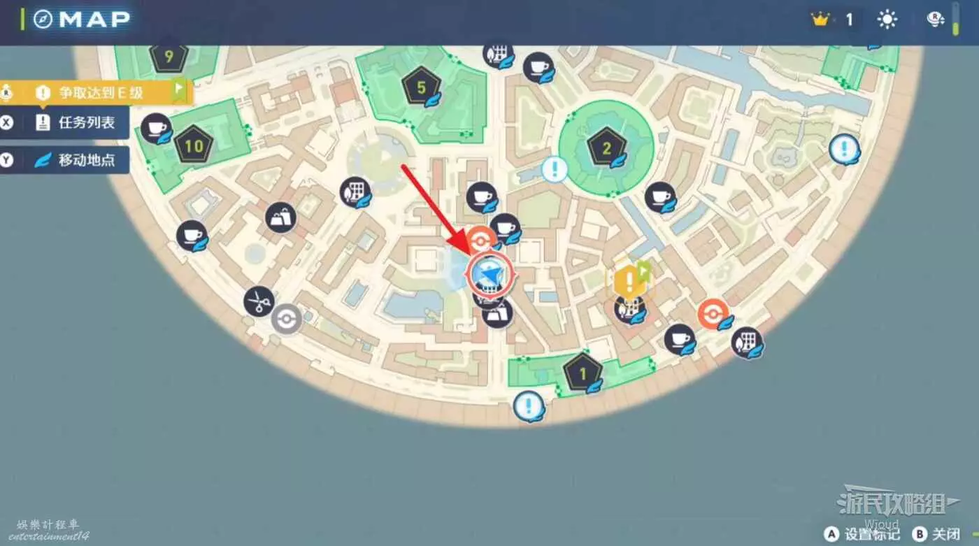 直接傳送到【英俊咖啡館】,坐全息傳送梯到標識所在的屋頂。