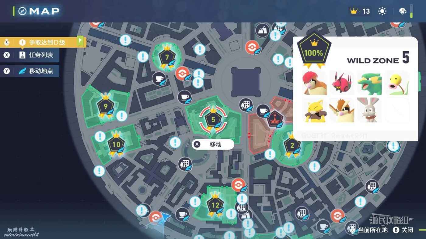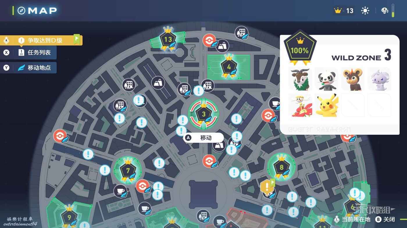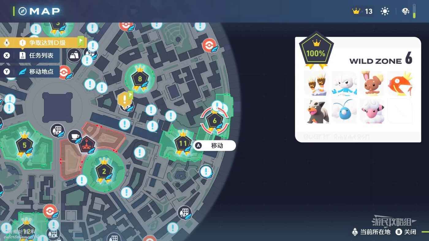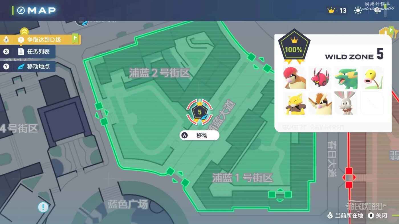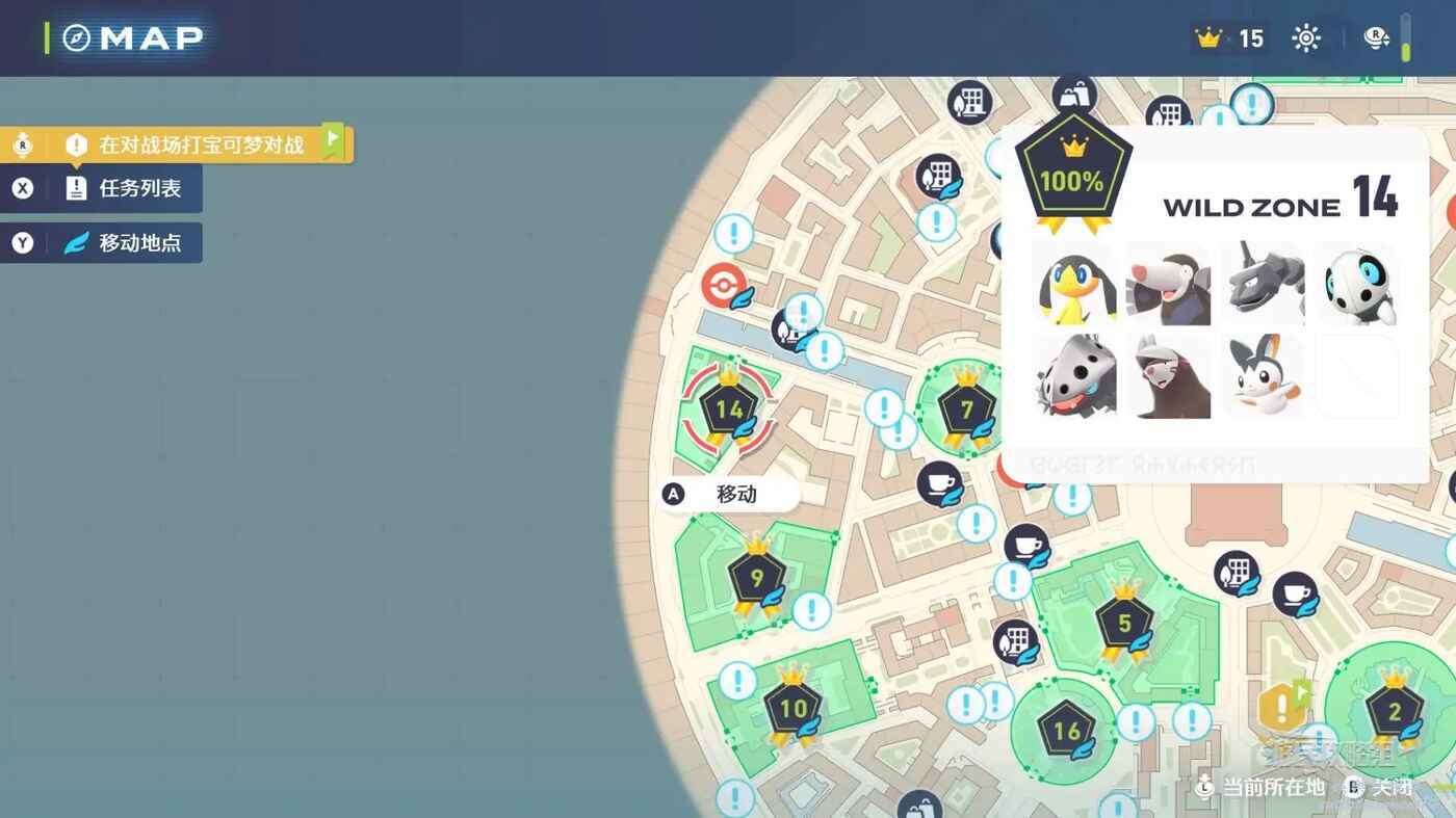 野生特區會跟隨主線推進逐步解鎖,如果發現地圖上沒有標註部分編號的野生特區,說明需要繼續推進主線。野生特區內出現的寶可夢會根據晝夜切換而有所變化,如果白天在野生特區內找不到特定的寶可夢,可以切換到夜晚再來尋找(可以在長椅/旅館休息到夜晚)。如果是特定時段的寶可夢沒有刷新,可以通過刷新地圖來尋找(例如先傳送到其他位置再回來)。