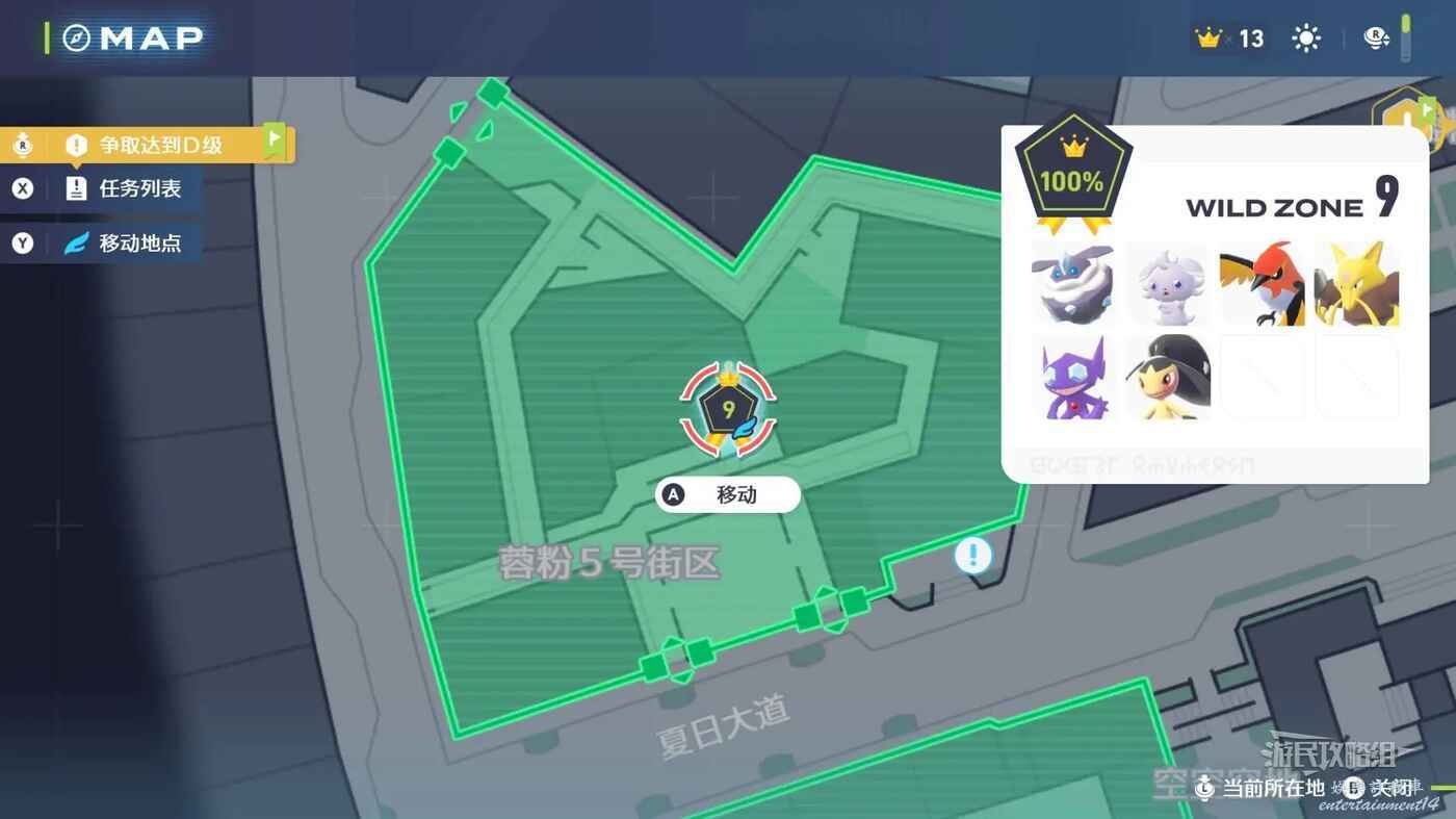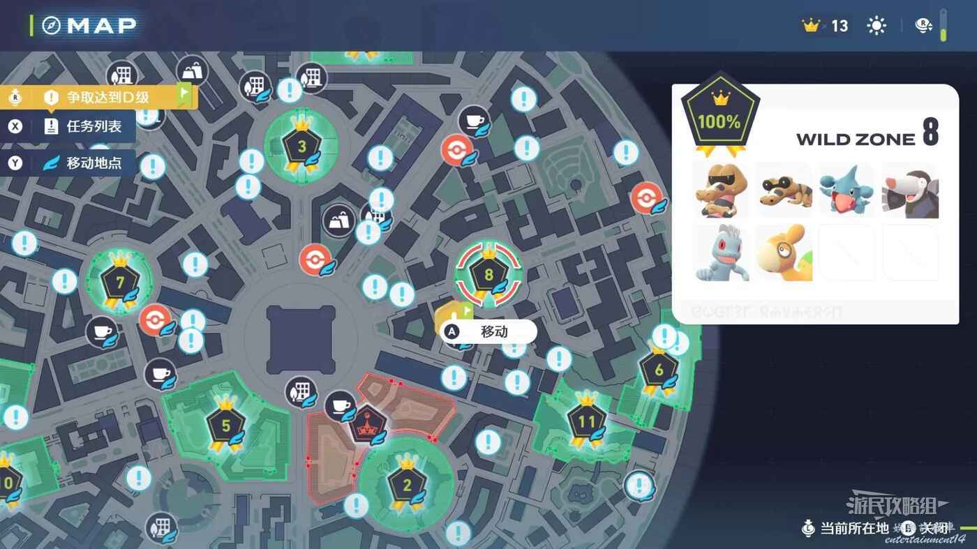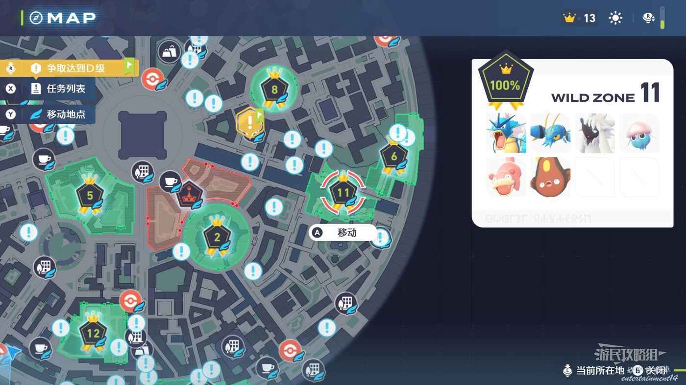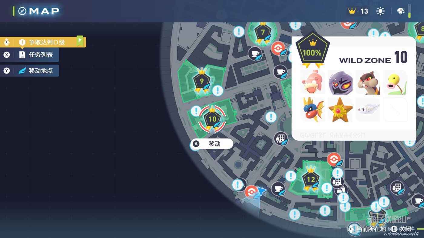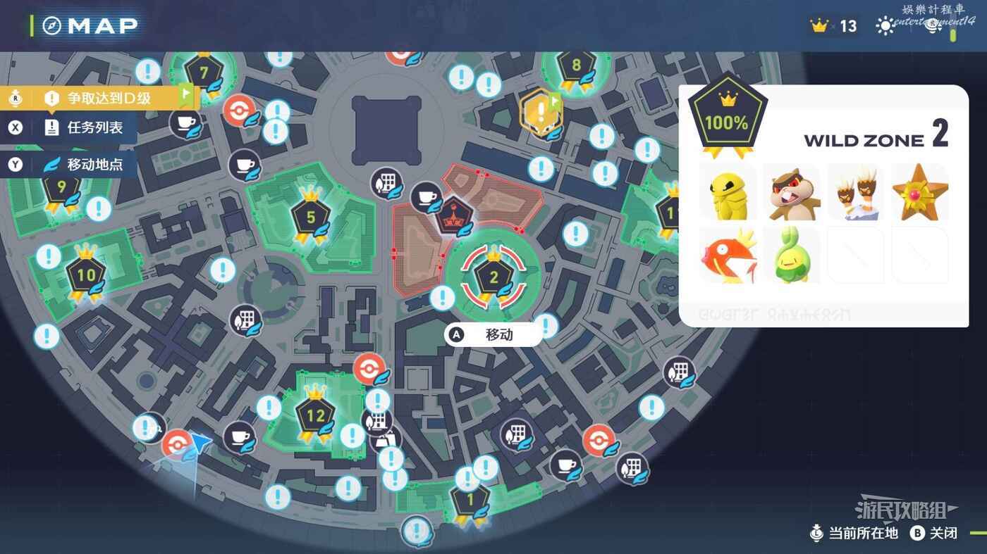野生特區會跟隨主線推進逐步解鎖,如果發現地圖上沒有標註部分編號的野生特區,說明需要繼續推進主線。野生特區內出現的寶可夢會根據晝夜切換而有所變化,如果白天在野生特區內找不到特定的寶可夢,可以切換到夜晚再來尋找(可以在長椅/旅館休息到夜晚)。如果是特定時段的寶可夢沒有刷新,可以通過刷新地圖來尋找(例如先傳送到其他位置再回來)。