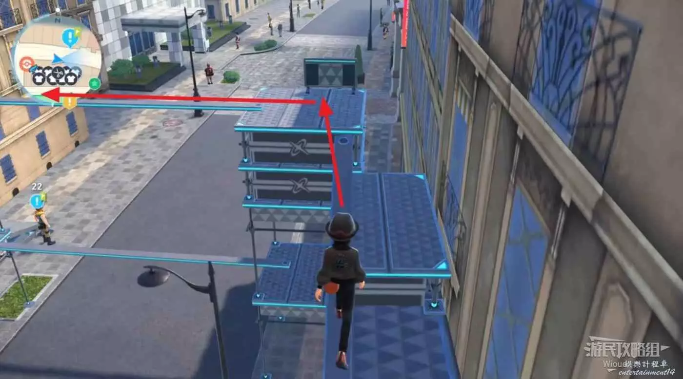 爬上去先穿過一個獨木橋,然後“走”到左邊平台,角色不會從中間縫隙掉下去。