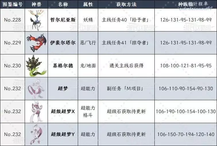 神獸種族值一覽
