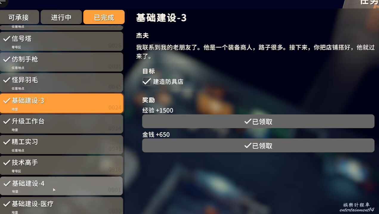 基礎建設這個任務是一整個系列的任務,一共有四個任務,主要是帶玩家熟悉一下遊戲中的建設玩法。