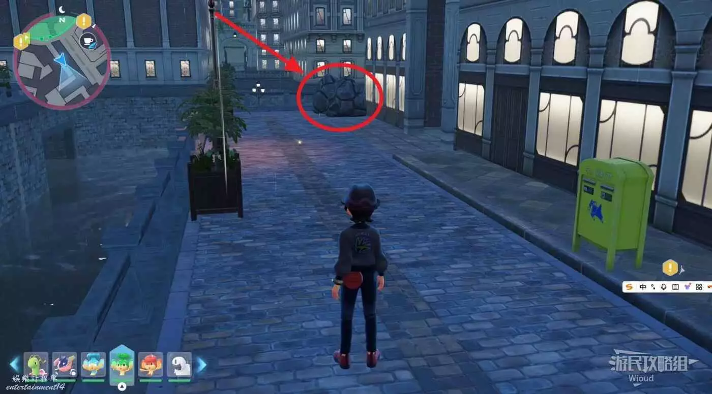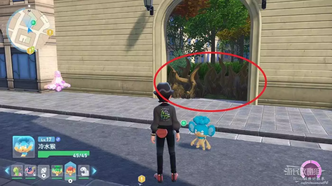 過去可以看到道路盡頭有兩塊石頭,用格鬥技能破壞掉,拾取裡面的金色精靈球獲得。