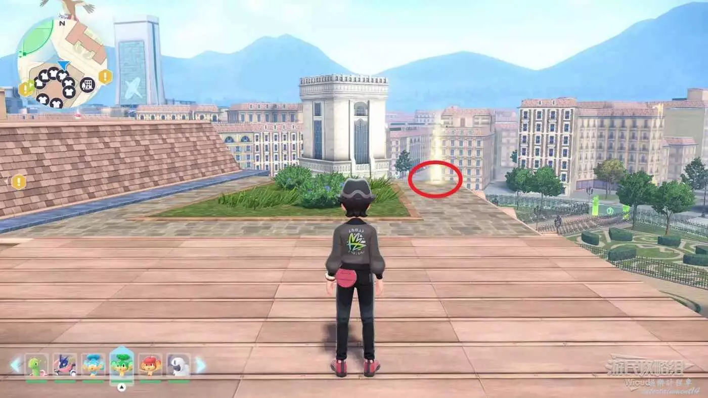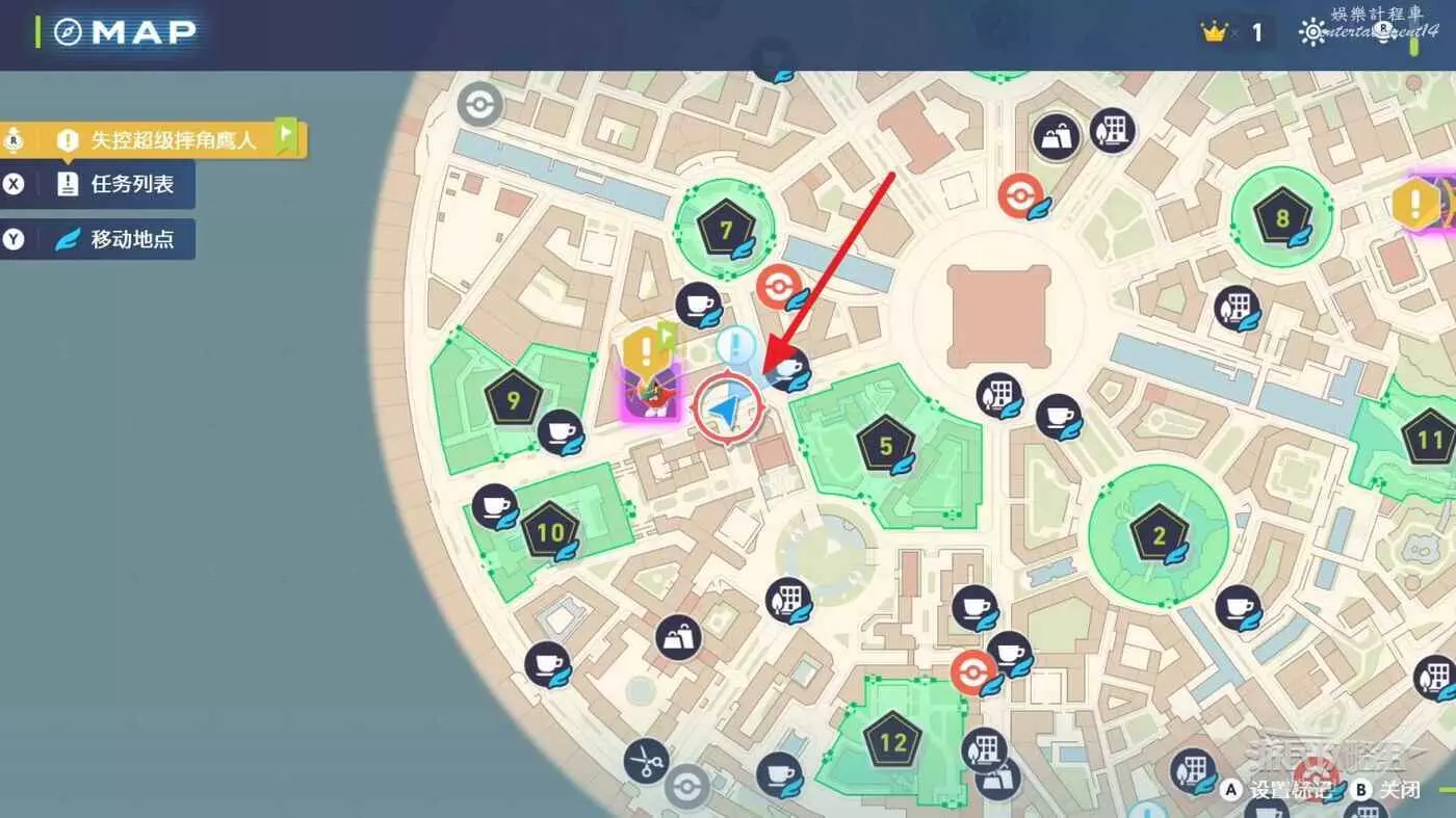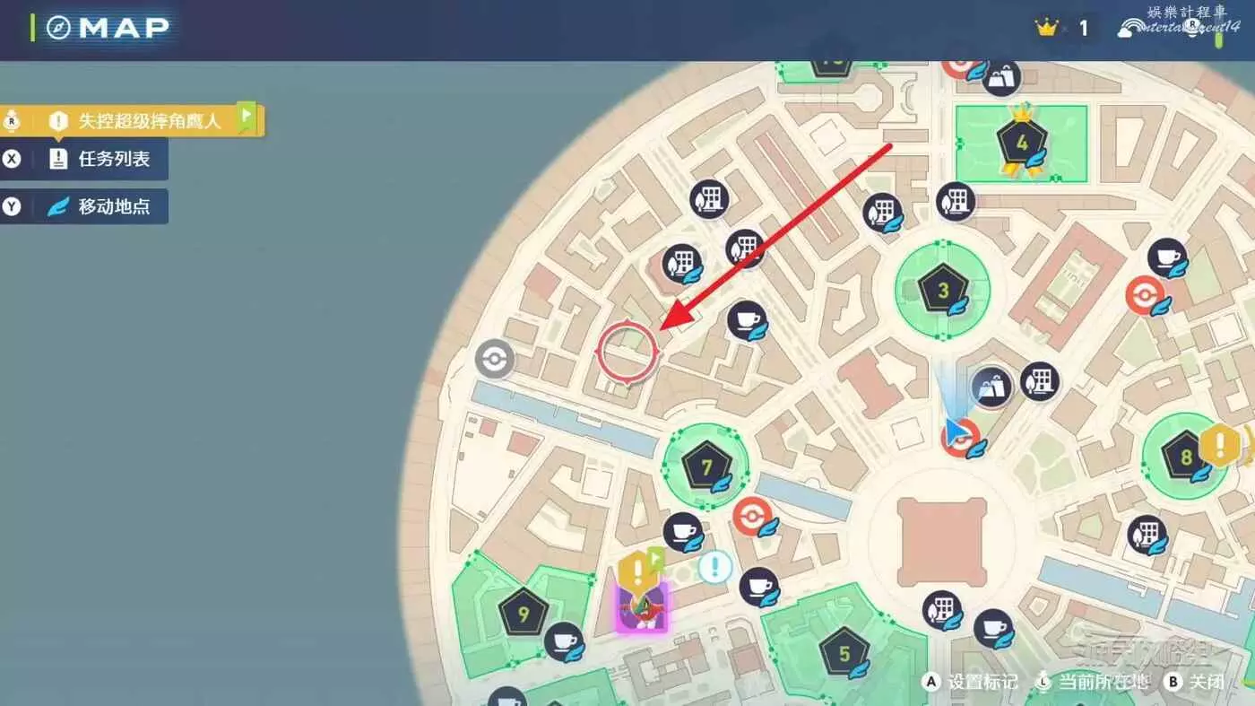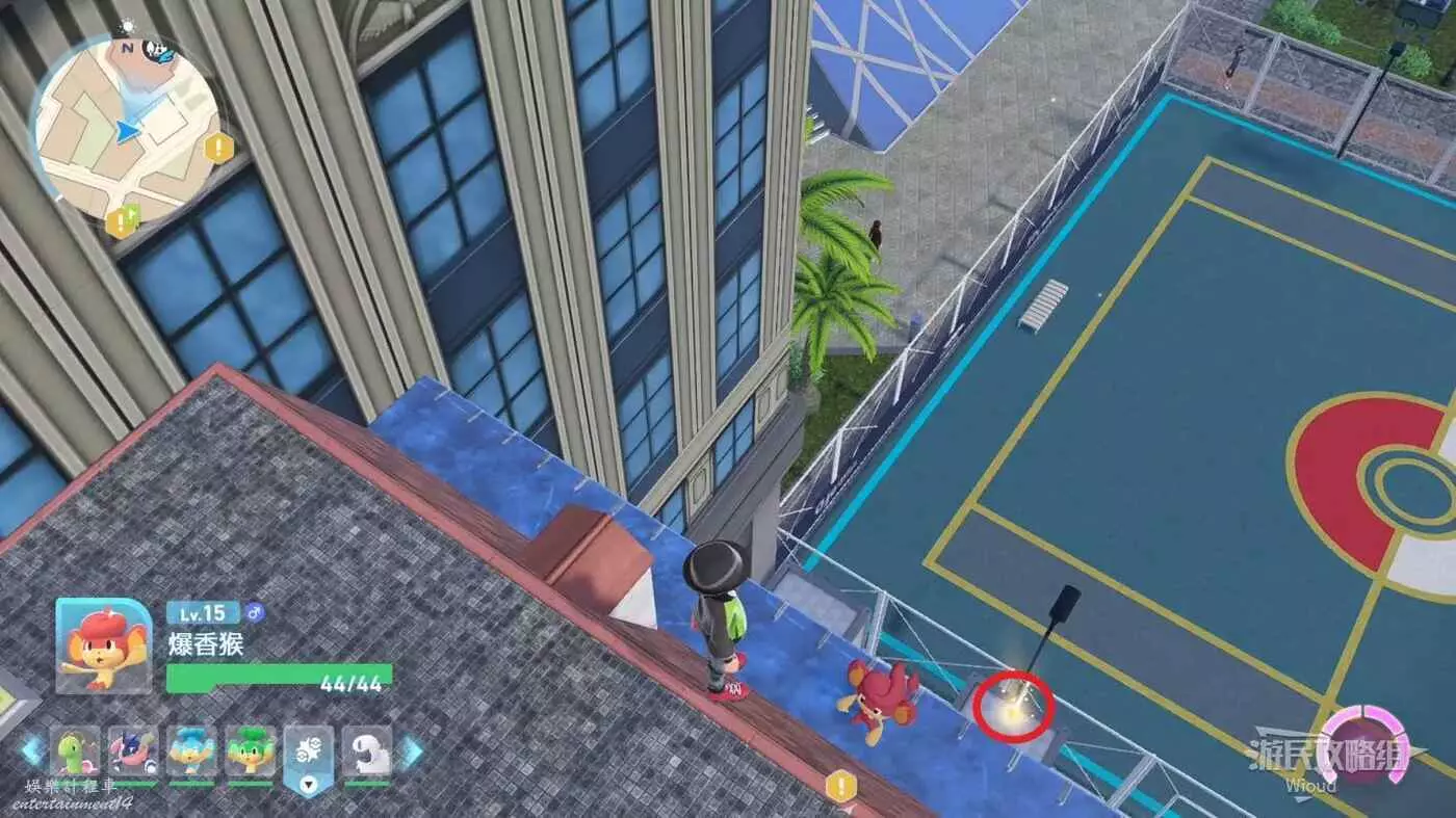 位置在3號野生特區左側的屋頂,先傳送到3號特區,走到左側紅圈所示處。