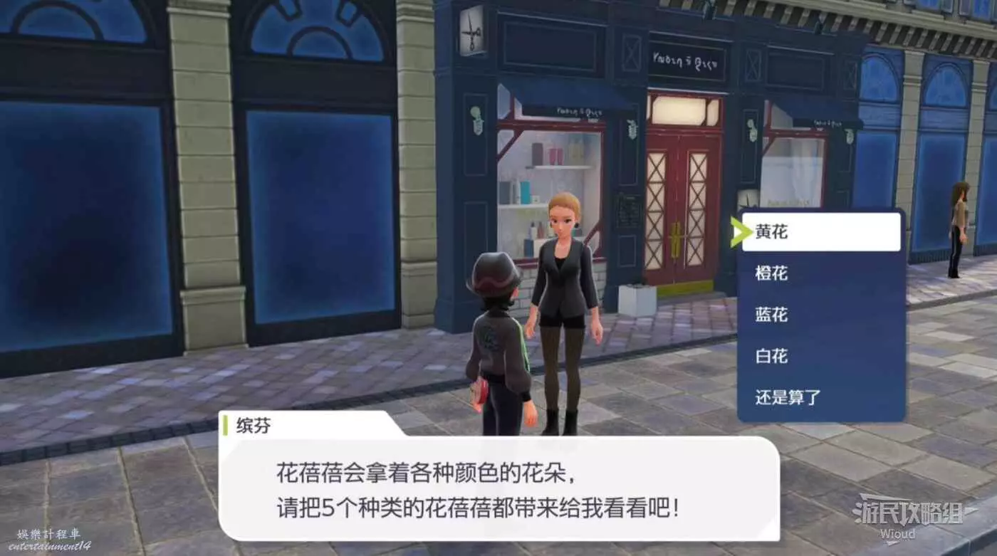 過去和店員對話,得知要找到五種不同顏色的花蓓蓓。