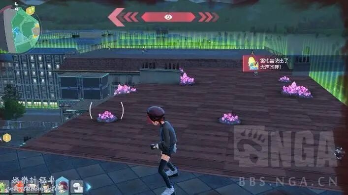 如圖,屋頂上會有一隻雷電獸一直追著你打不過問題不大,一次能刷3只,我運氣比較差在沒有閃符的情況下刷了十幾個小時才出一隻公閃,接下來會接著刷母閃。
