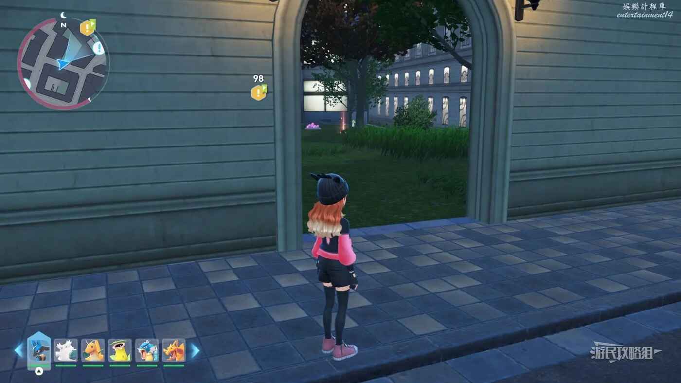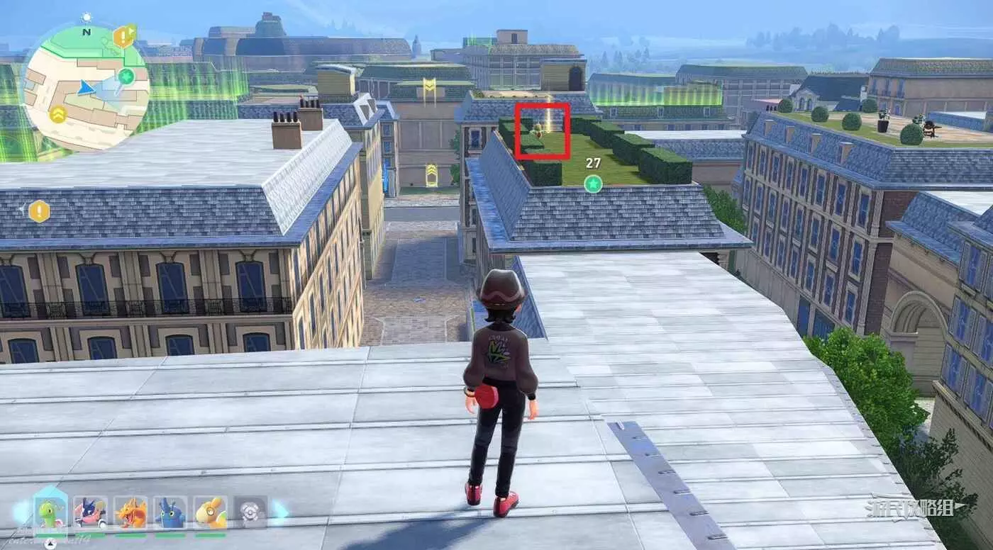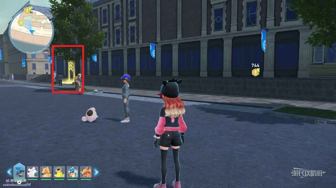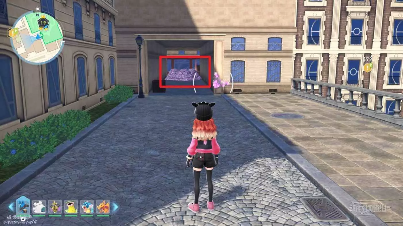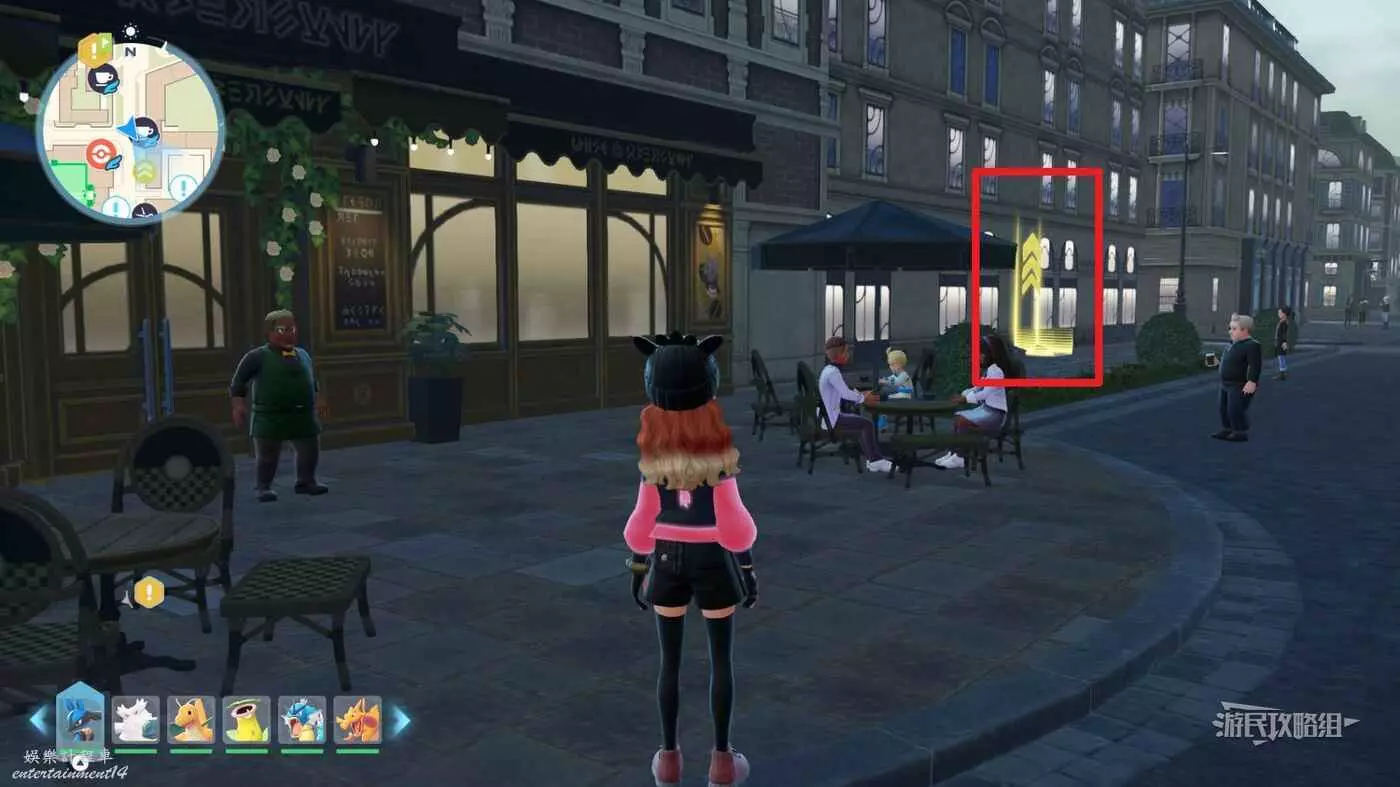 需要使用傳送梯到達房頂,然後打碎超級晶石過橋到對面房頂並左轉,使用洛托姆滑翔到達對面房頂爬梯子,繼續打開並走蜘蛛網到對面房頂,往左看就能看到迷你龍,附近有很多長椅。