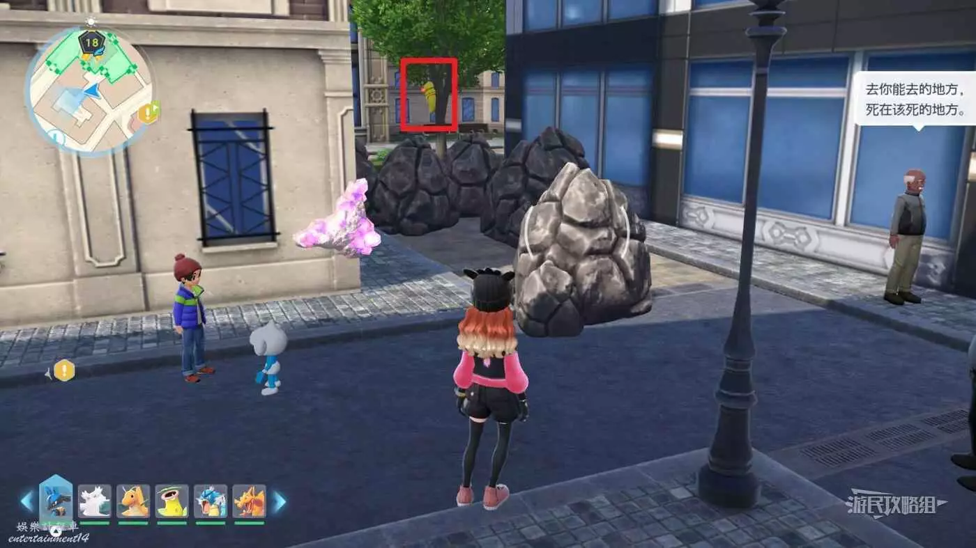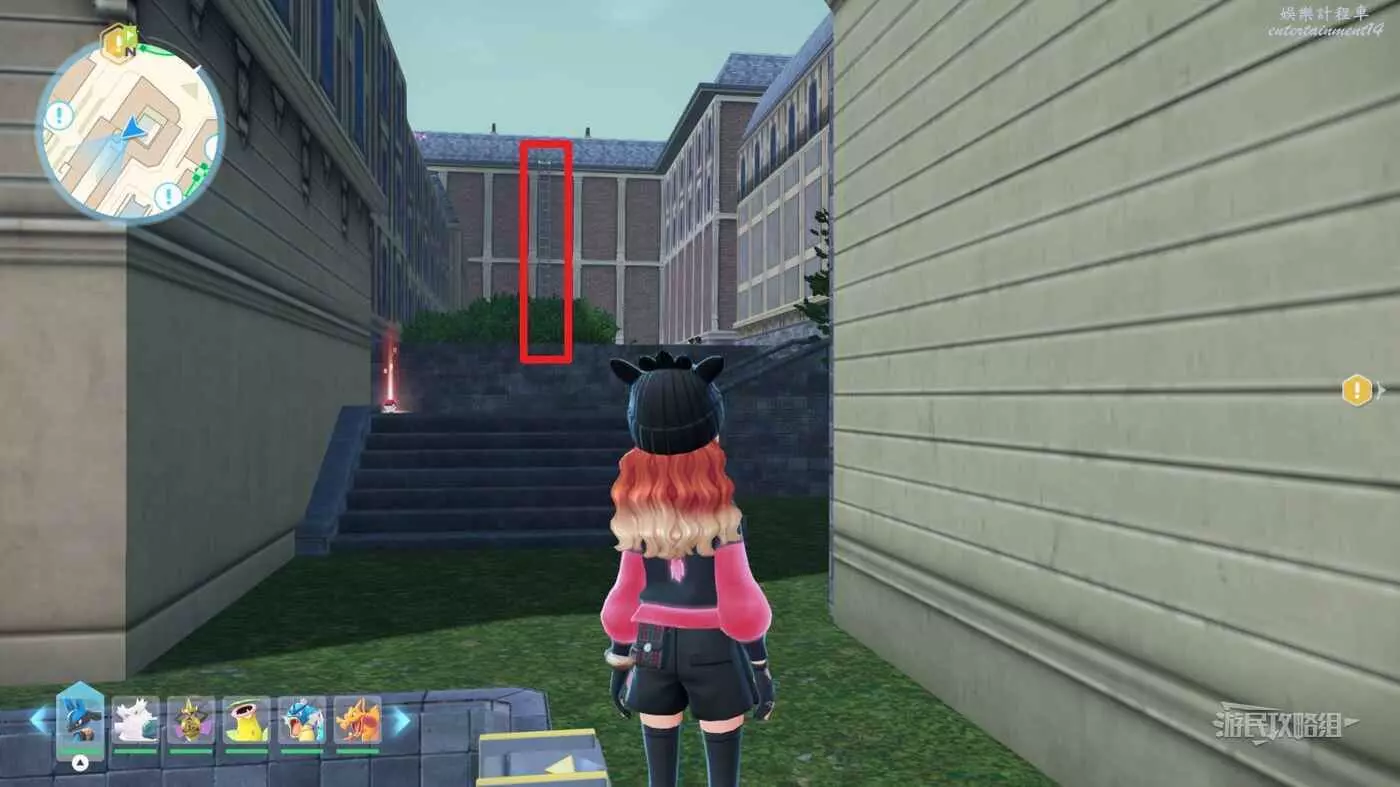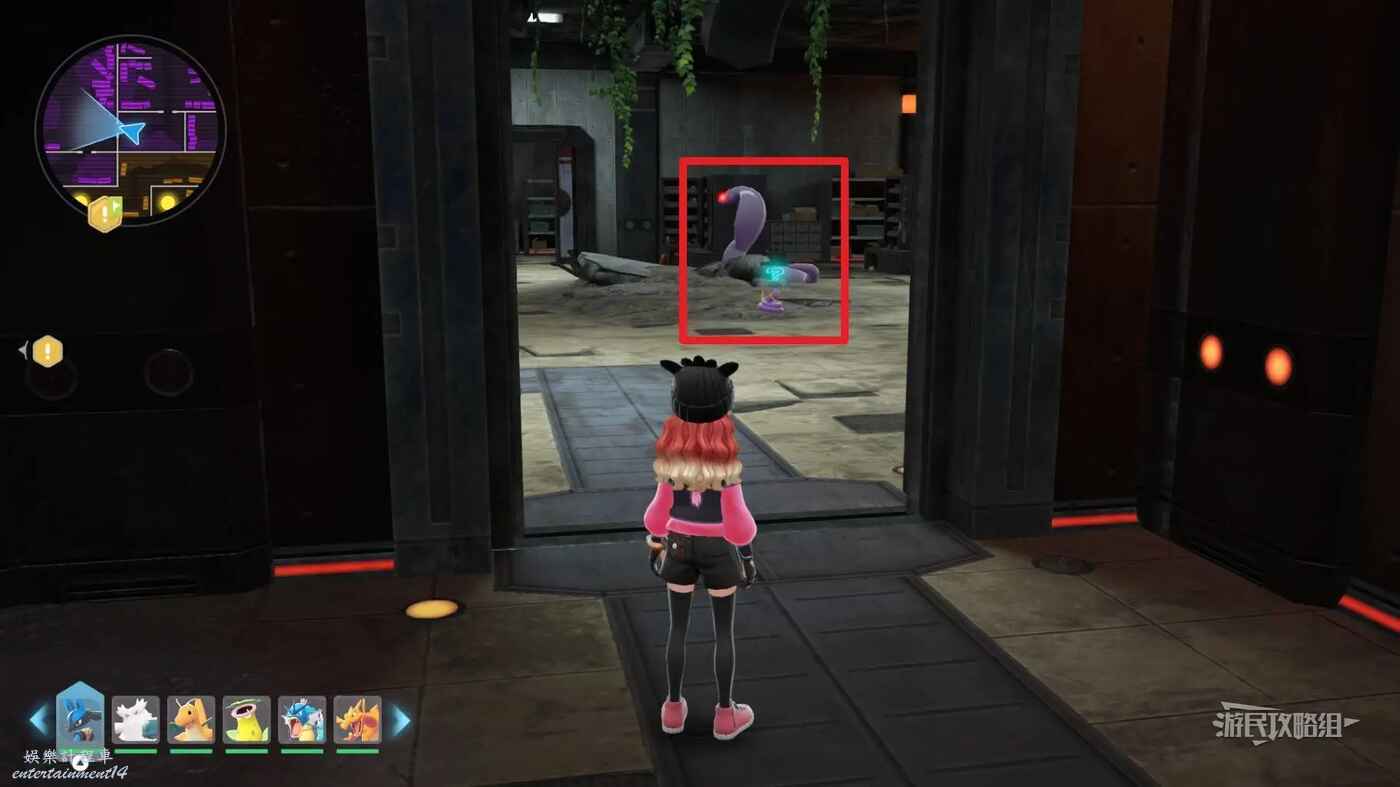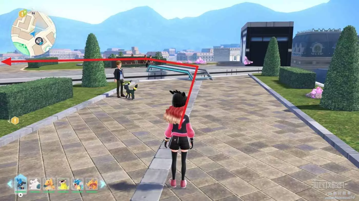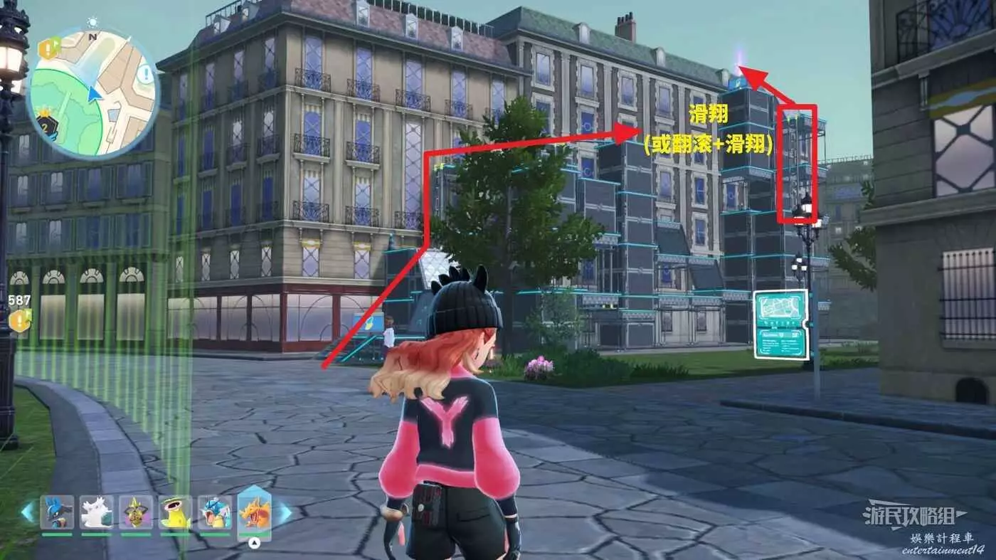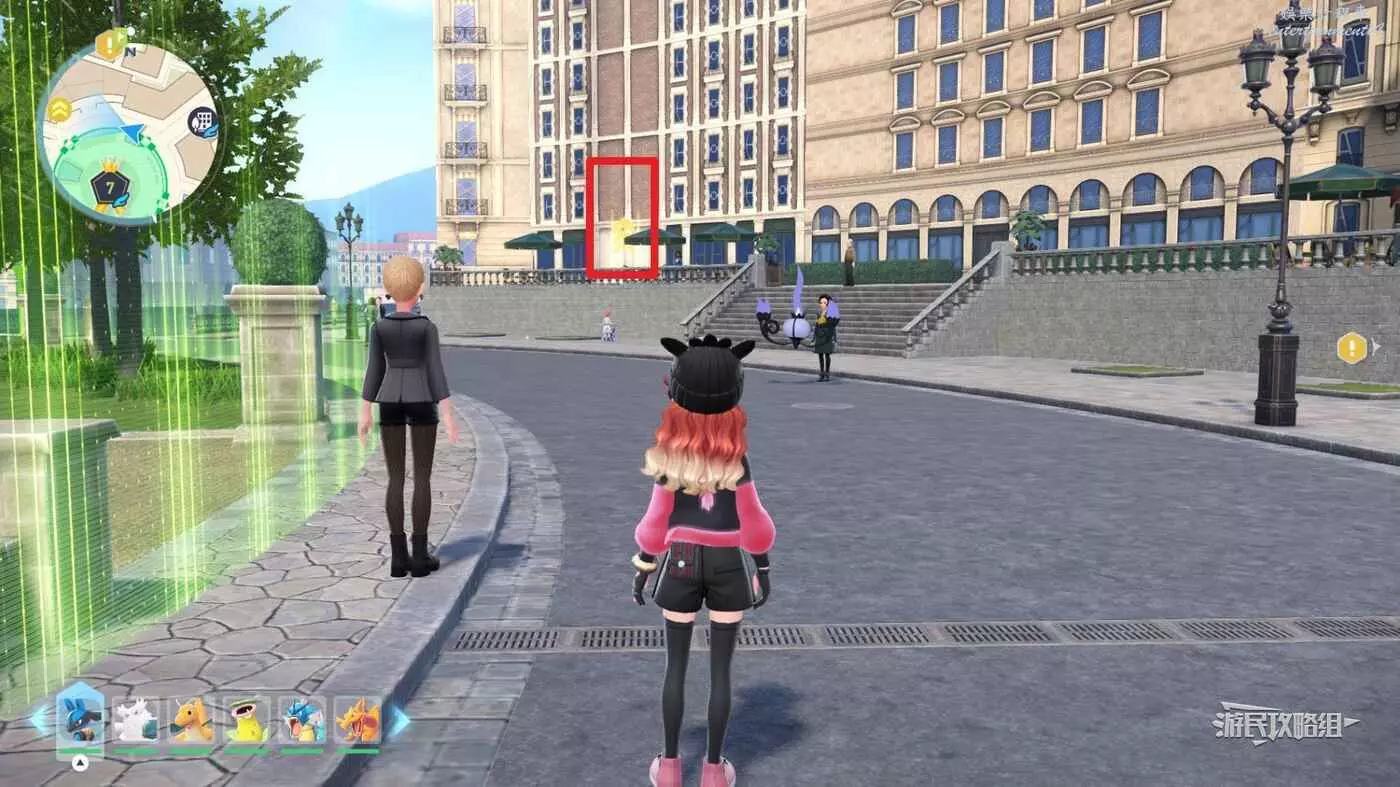 需要使用傳送梯到達房頂,然後打碎超級晶石過橋到對面房頂並左轉,使用洛托姆滑翔到達對面房頂爬梯子,繼續打開並走蜘蛛網到對面房頂,往左看就能看到迷你龍,附近有很多長椅。