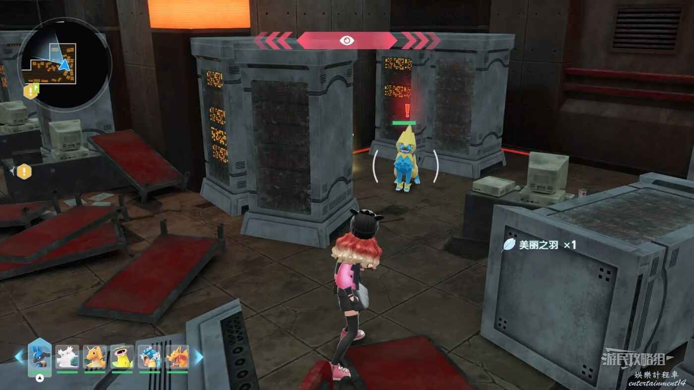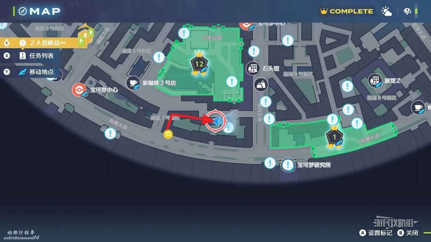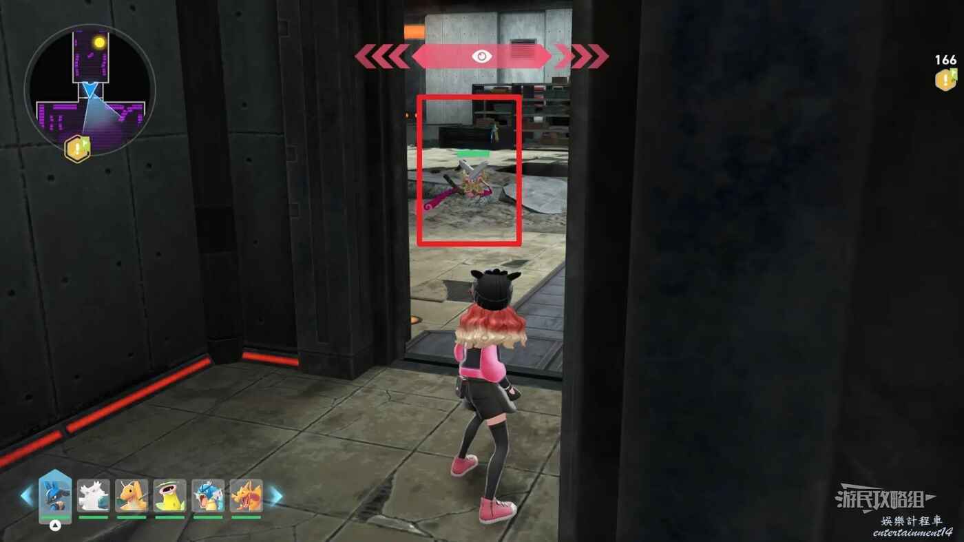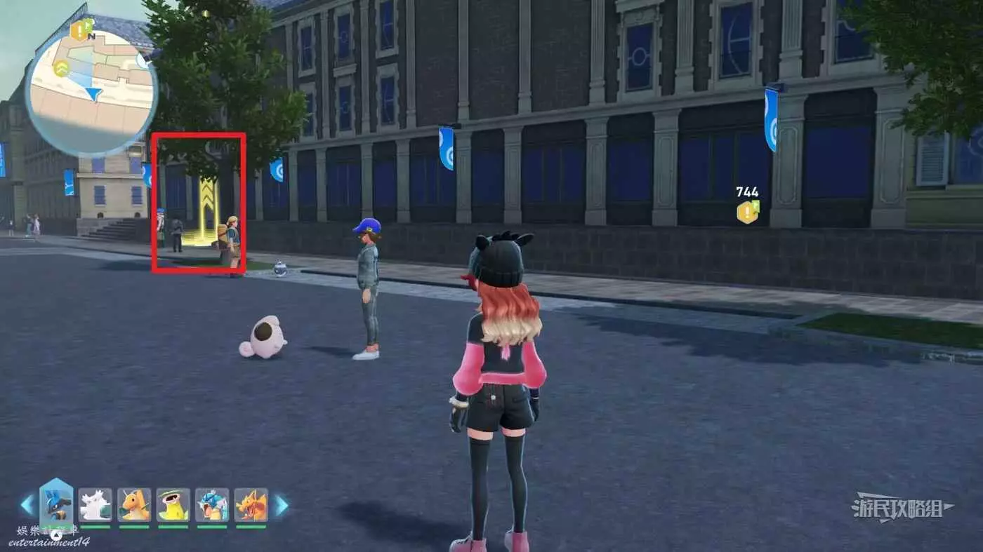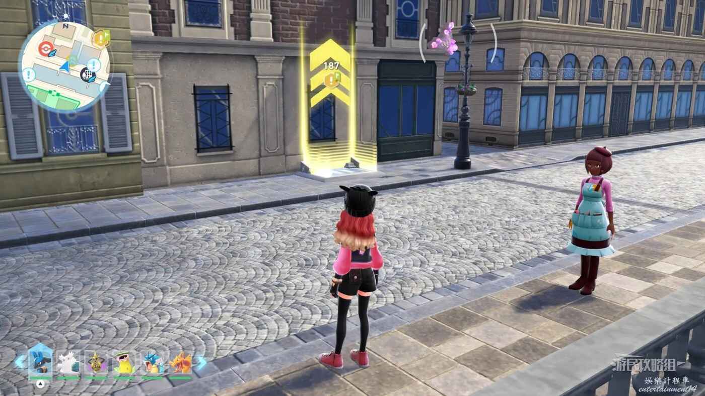 需要使用傳送梯到達房頂,然後打碎超級晶石過橋到對面房頂並左轉,使用洛托姆滑翔到達對面房頂爬梯子,繼續打開並走蜘蛛網到對面房頂,往左看就能看到迷你龍,附近有很多長椅。