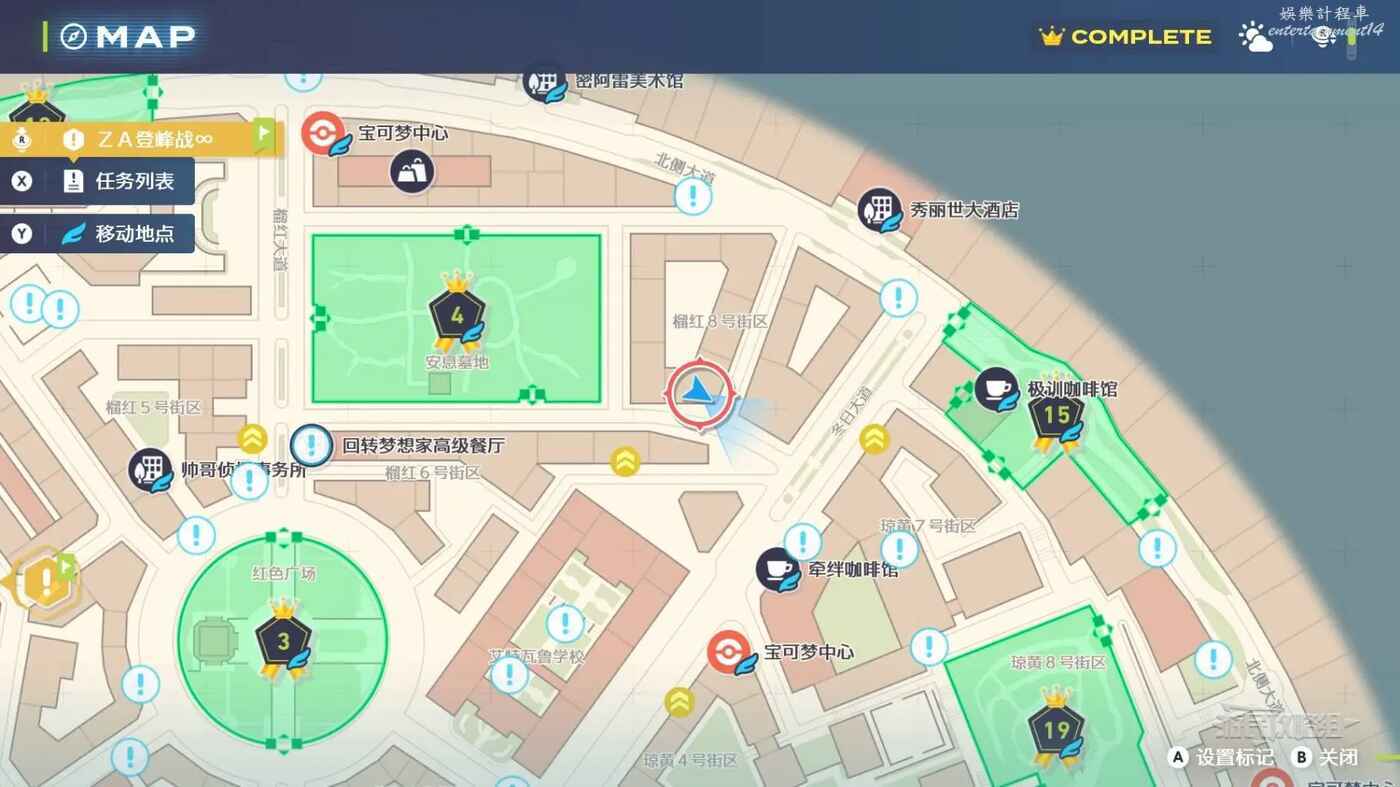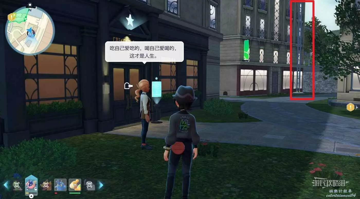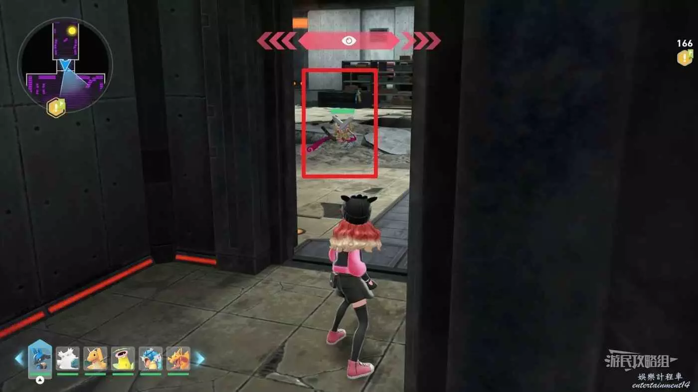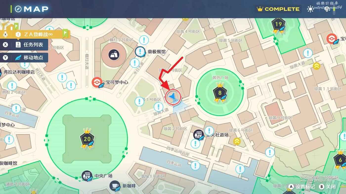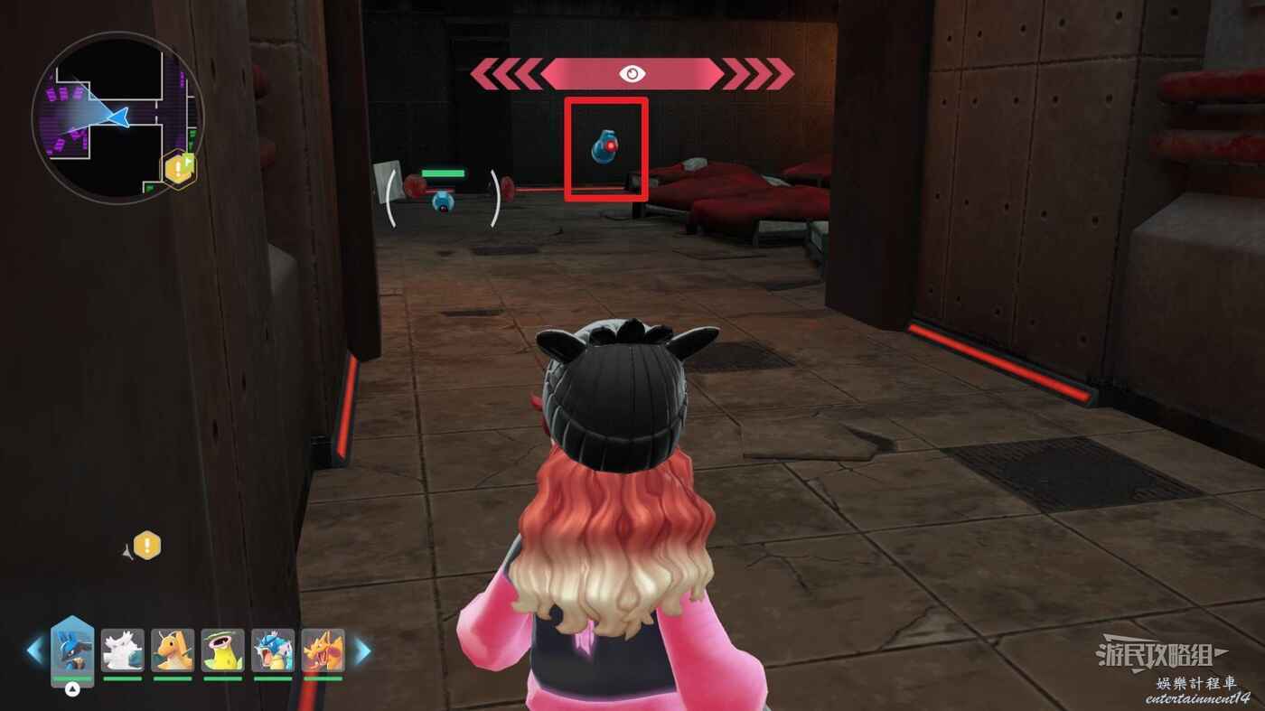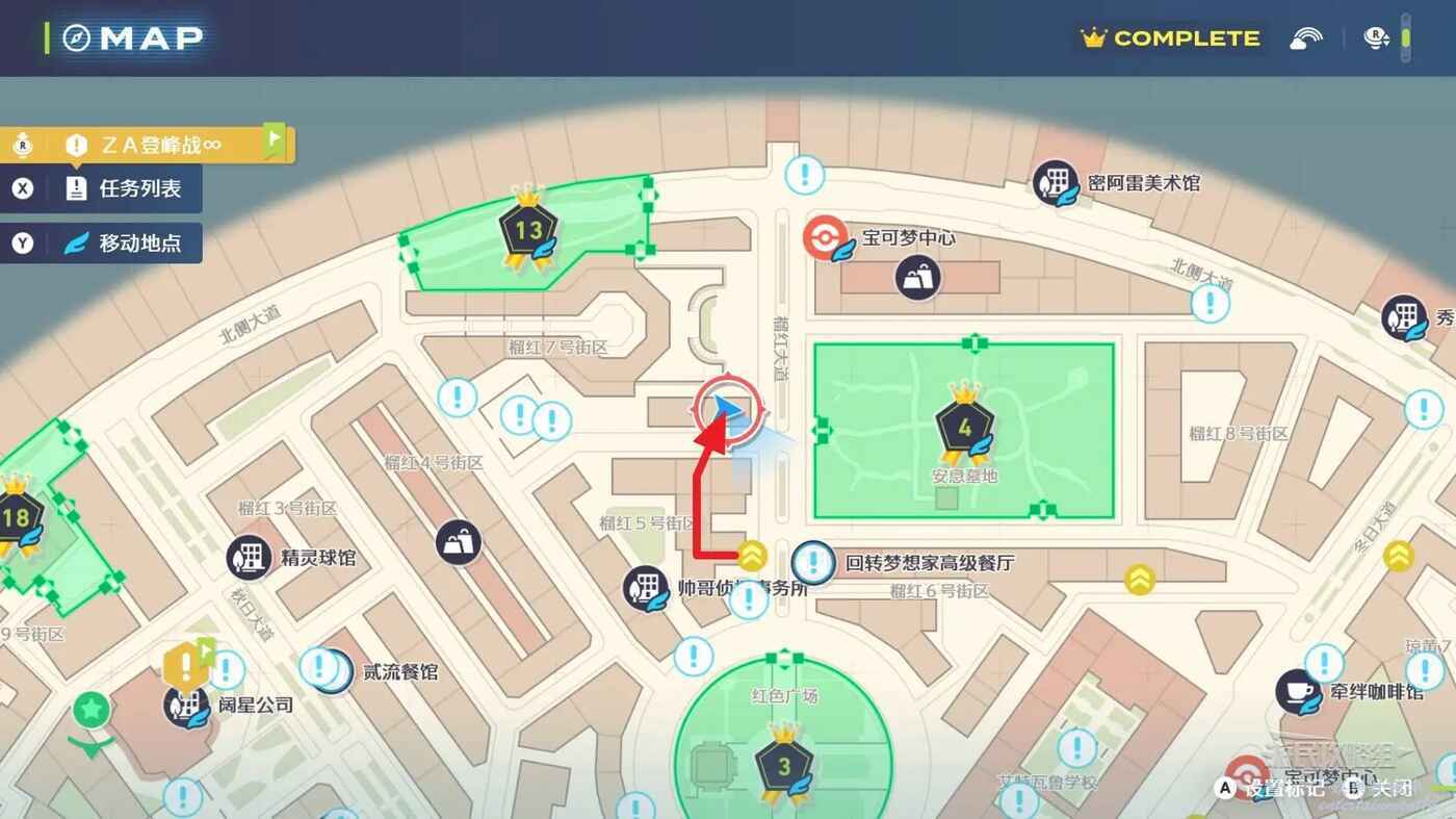 需要使用傳送梯到達房頂,然後打碎超級晶石過橋到對面房頂並左轉,使用洛托姆滑翔到達對面房頂爬梯子,繼續打開並走蜘蛛網到對面房頂,往左看就能看到迷你龍,附近有很多長椅。