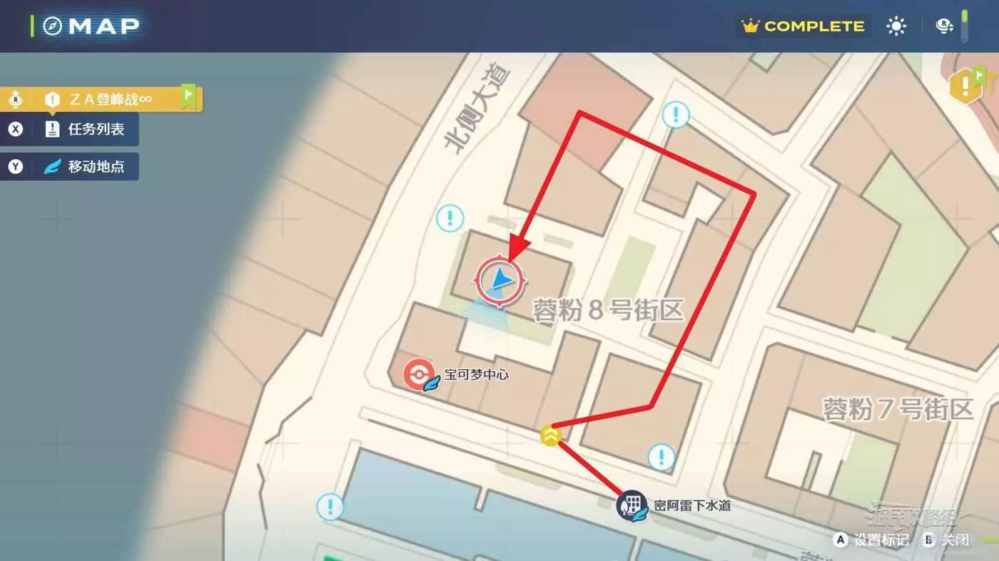 上樓梯後在小巷裡可以看到擋路的污泥,用水系招式清掉污泥後繼續往前走,在拐角處就可以看到。