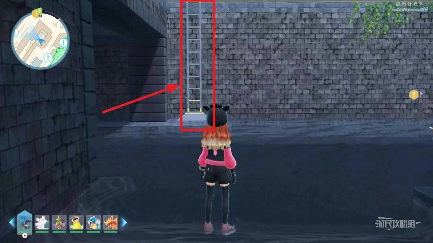 需要從浦藍5號街區走橋下的水道,到達另一側爬梯子到達房頂再前往目標位置。
