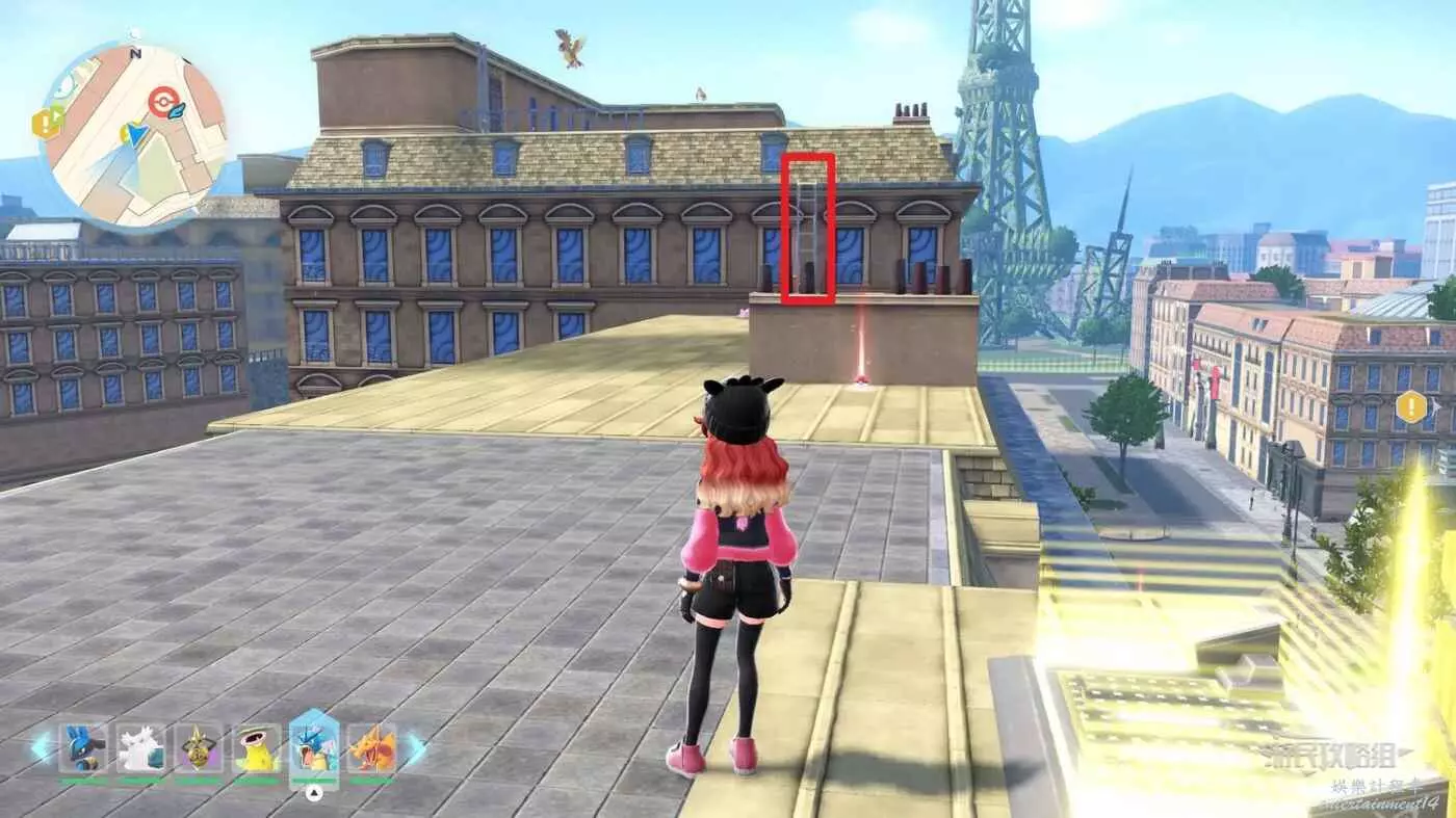 使用寶可夢中心旁邊的傳送梯到達房頂,然後用寶可夢招式破壞超級晶石,爬梯子到上方房頂即可看到。