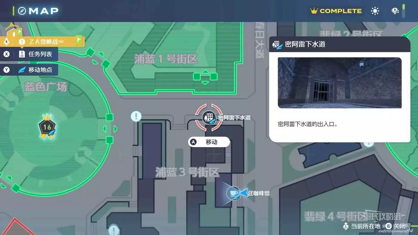 在野生特區05旁邊。從【汪汪咖啡館】後方進入下水道區域,然後接取副任務057【噴火駝與新商機】才能進入此下水道區域。