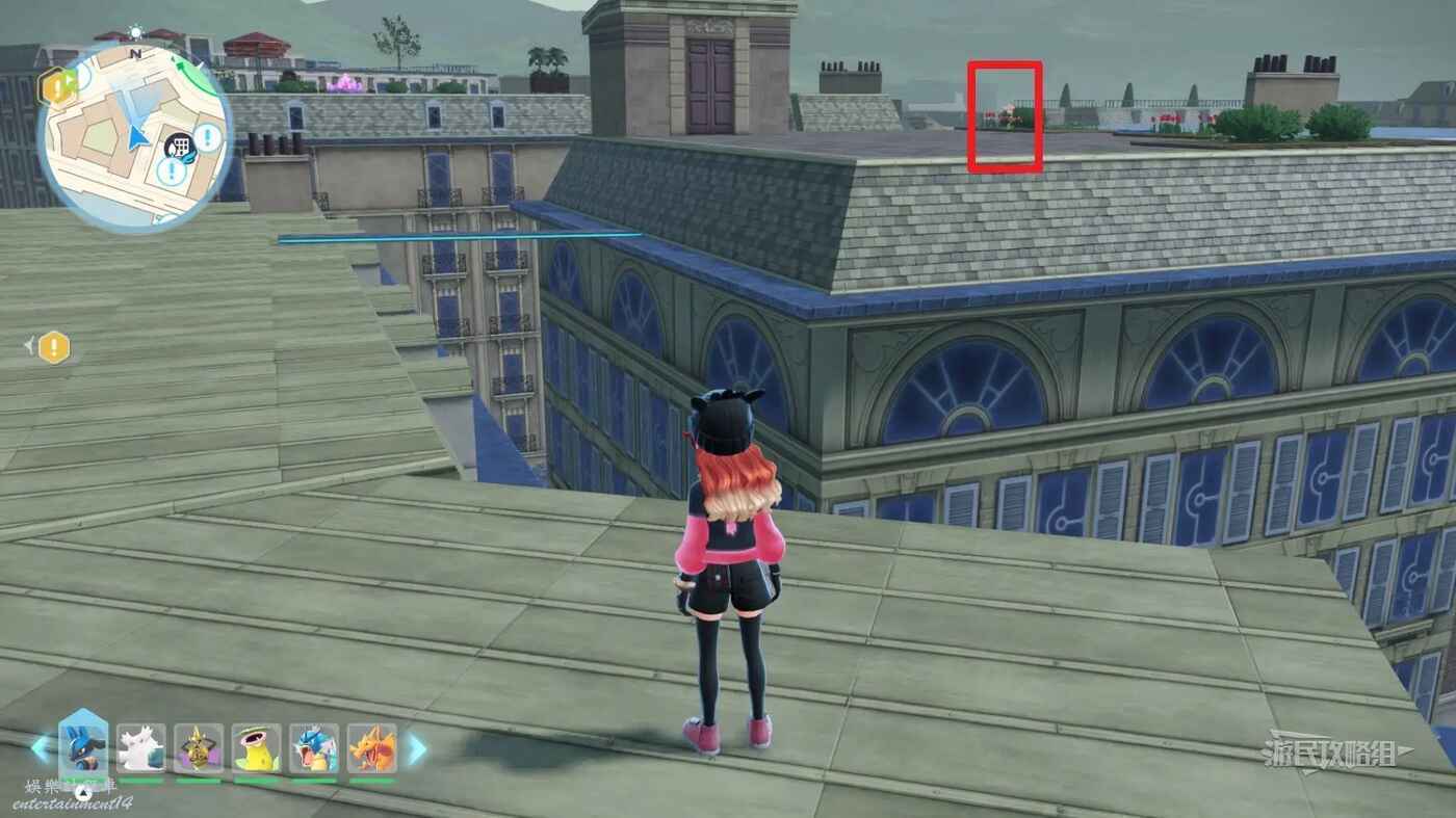 使用寶可夢中心旁邊的傳送梯到達房頂,然後用寶可夢招式破壞超級晶石,爬梯子到上方房頂即可看到。