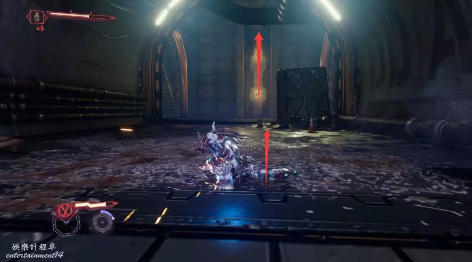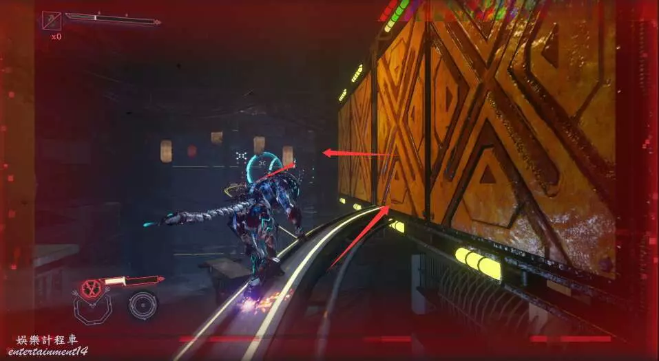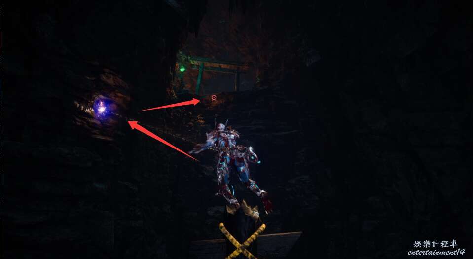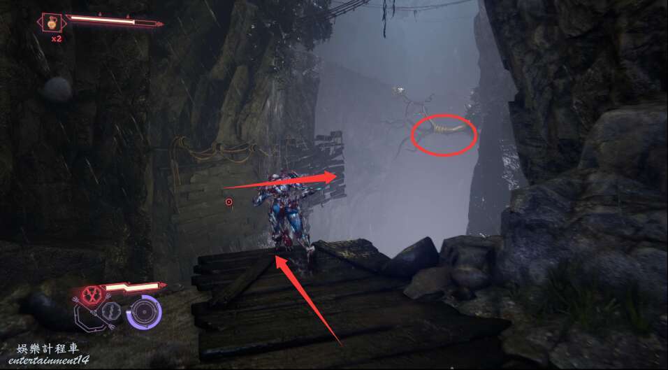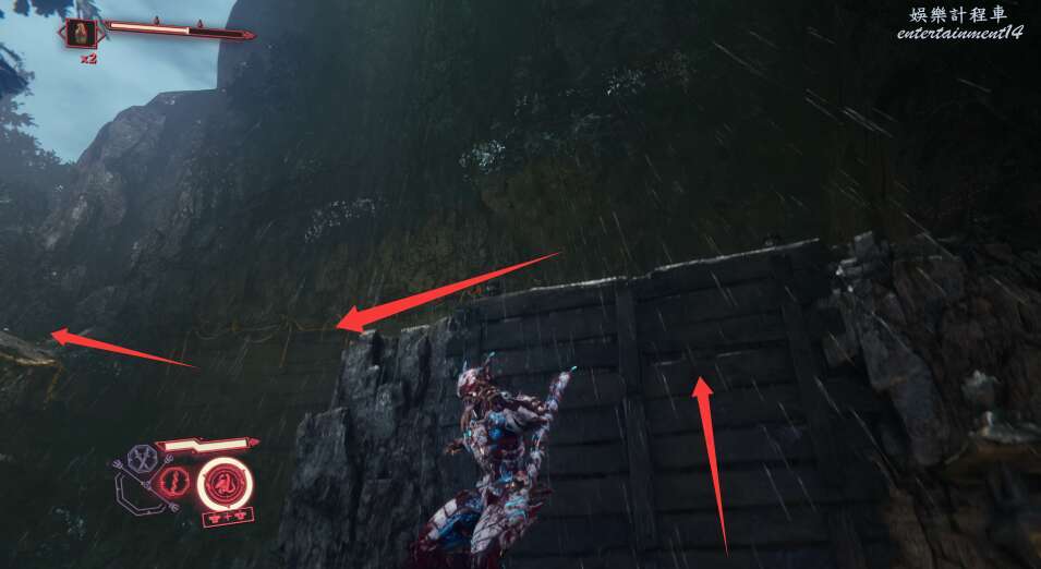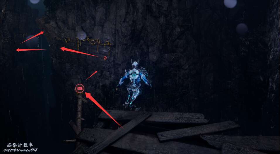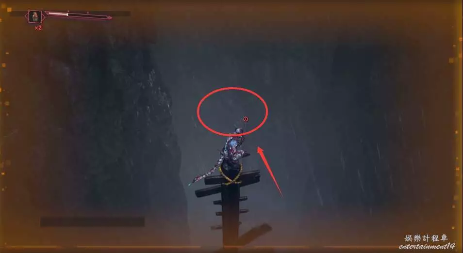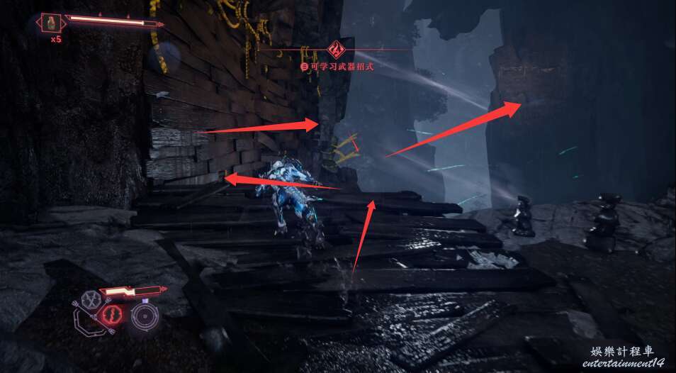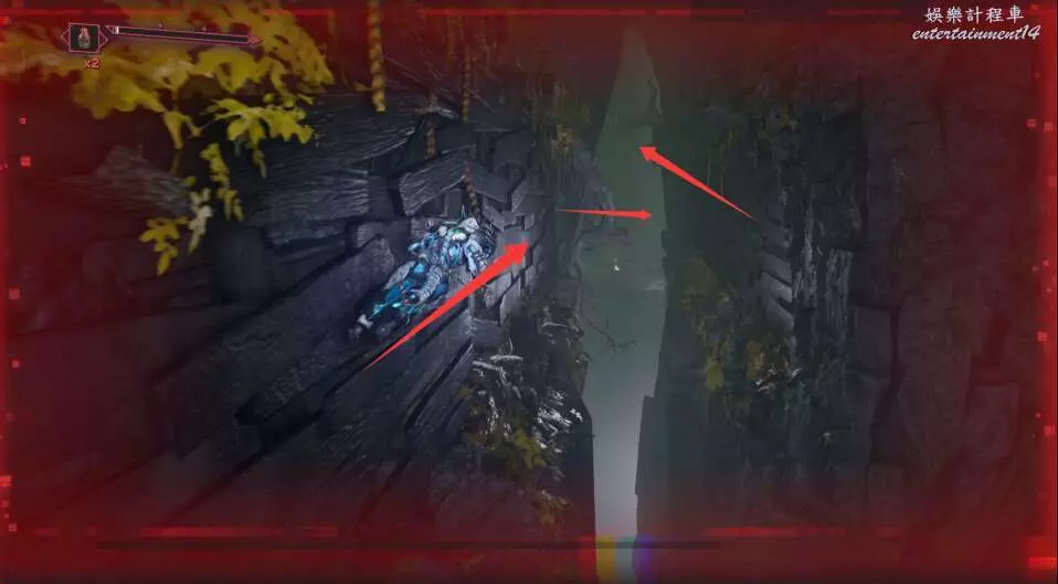 進入大門之後,來到保存點旁利用牆壁到達上方平台。