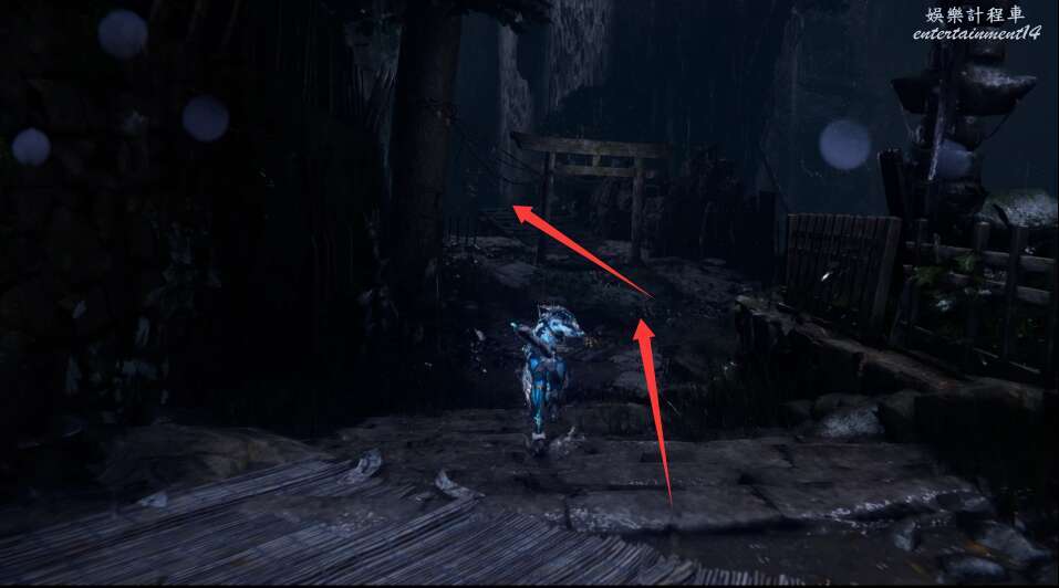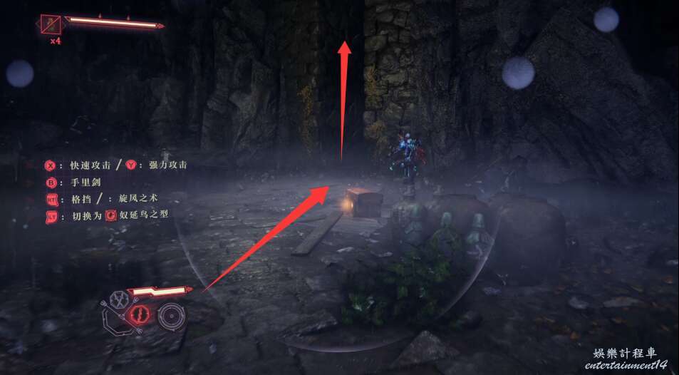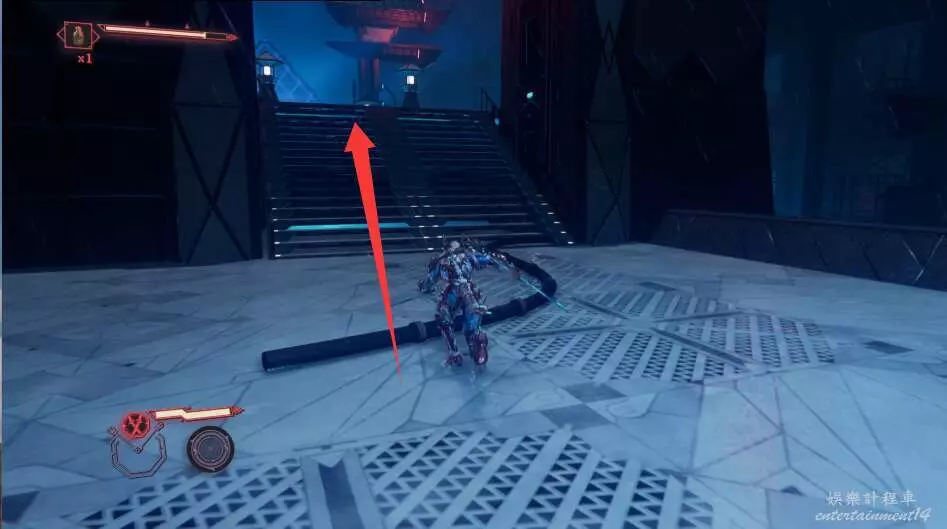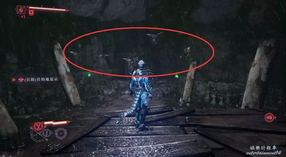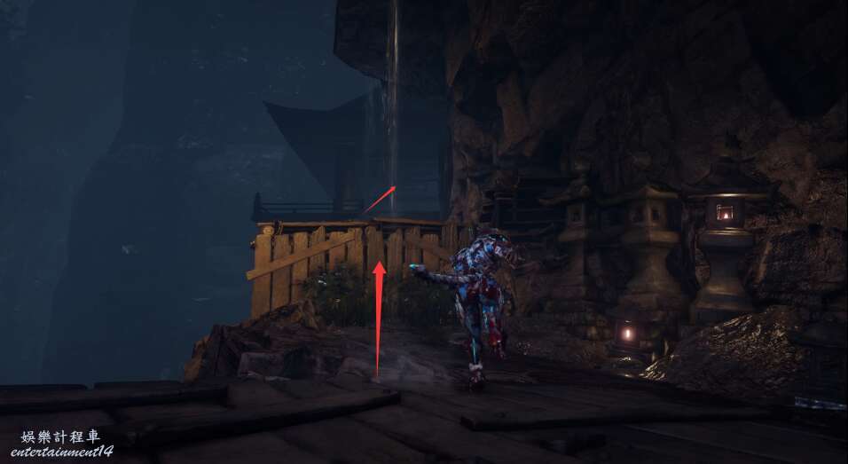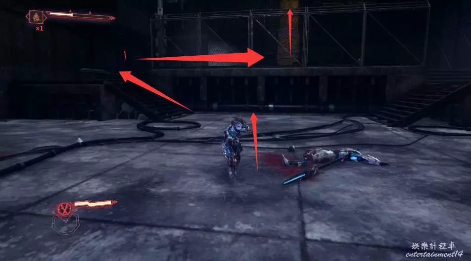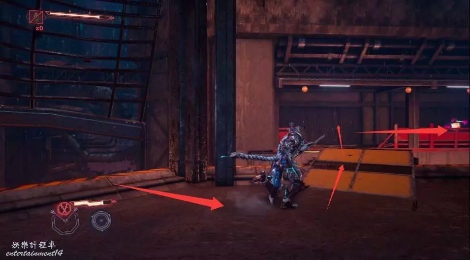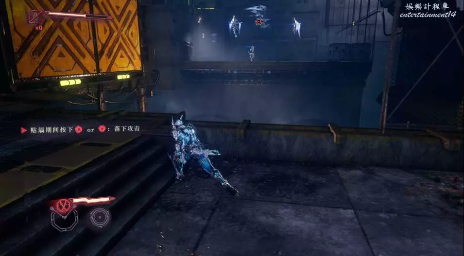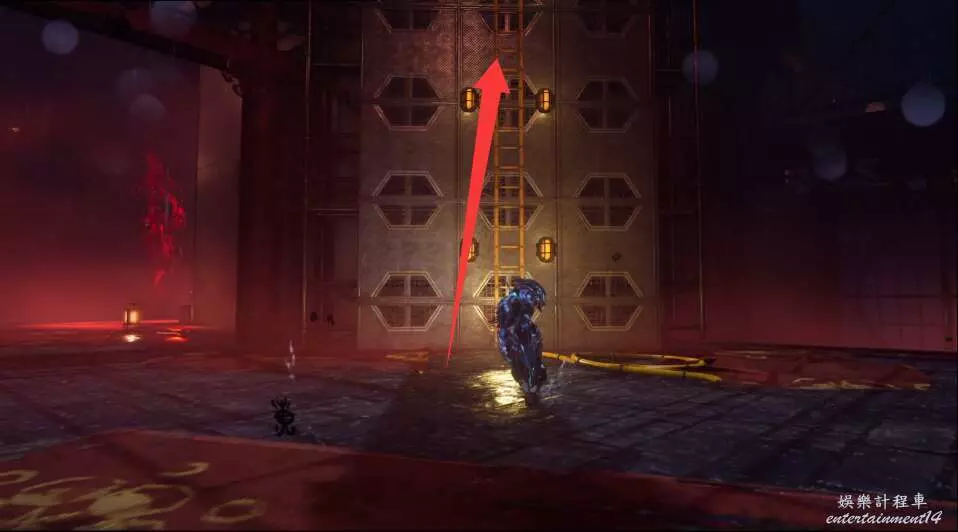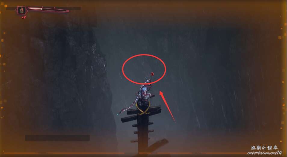 進入大門之後,來到保存點旁利用牆壁到達上方平台。