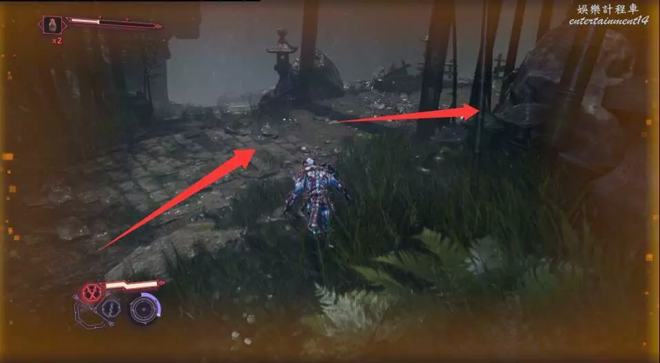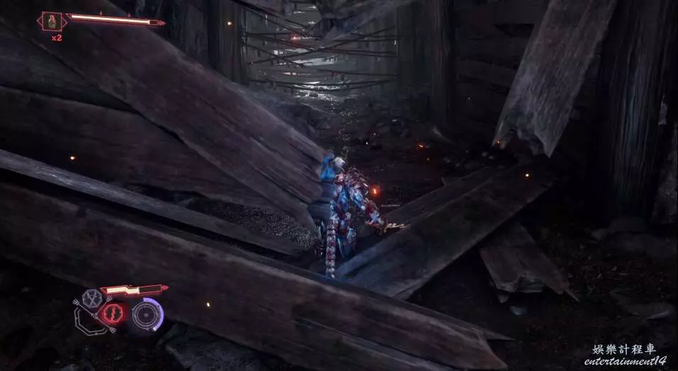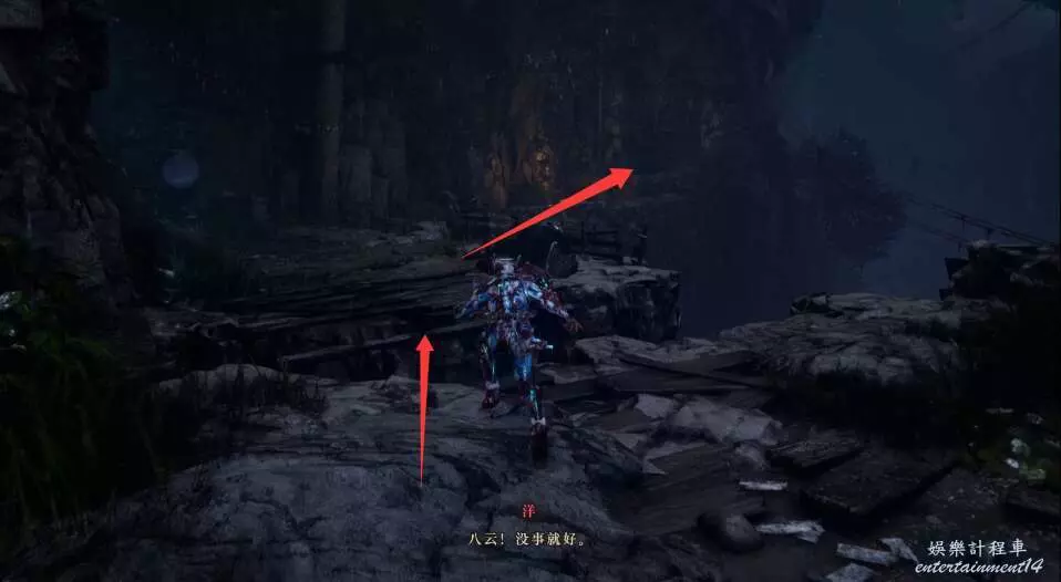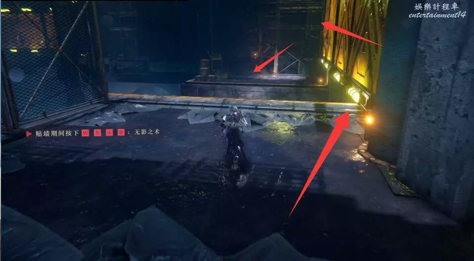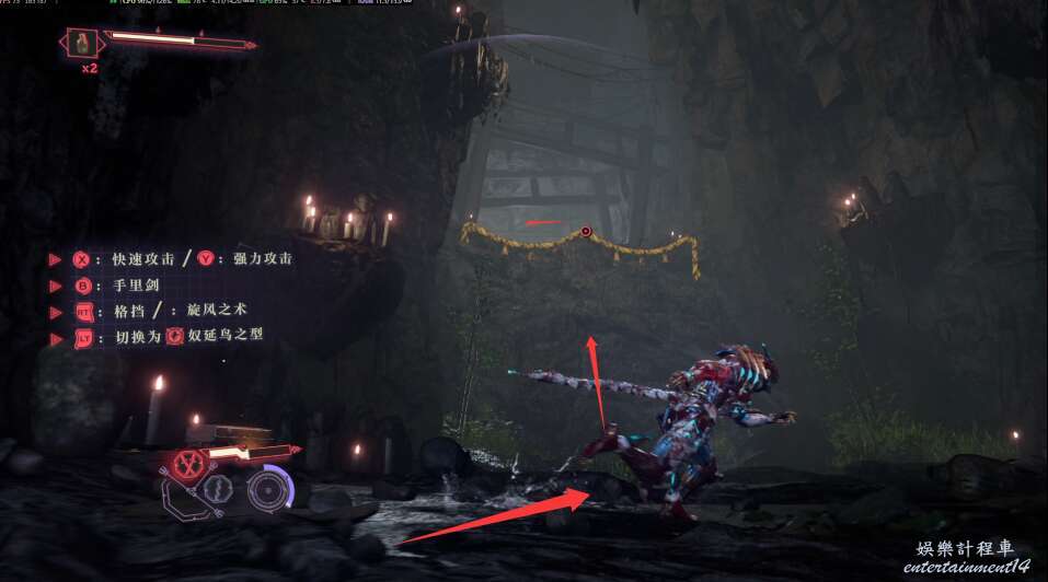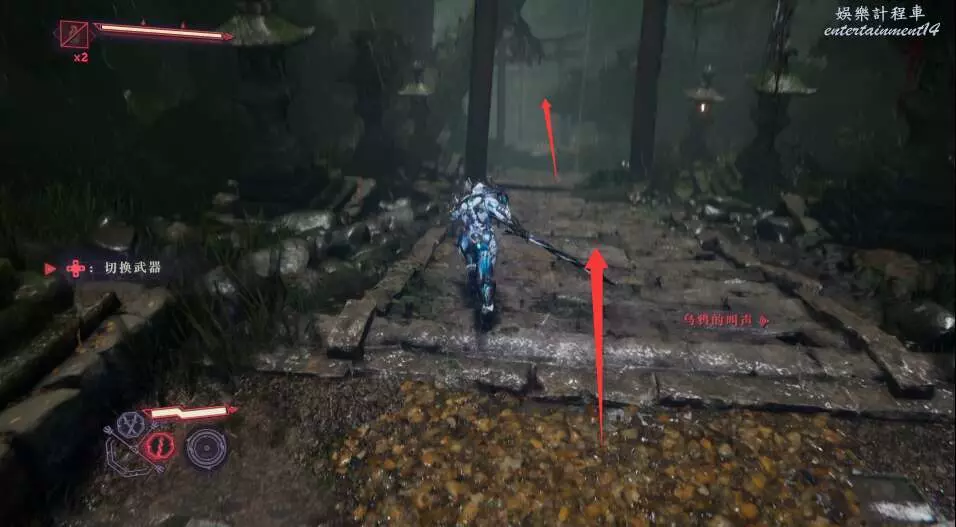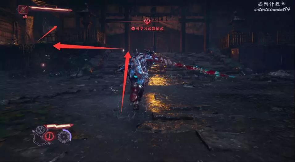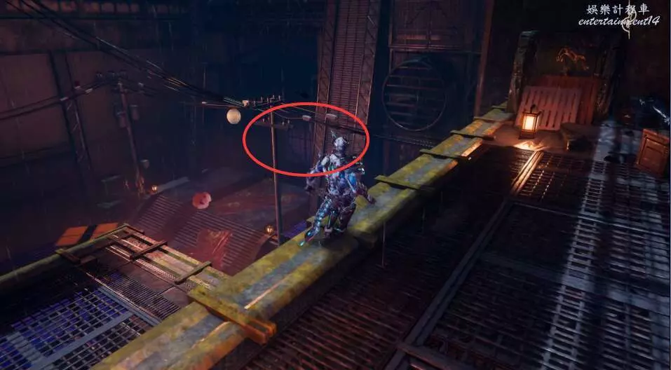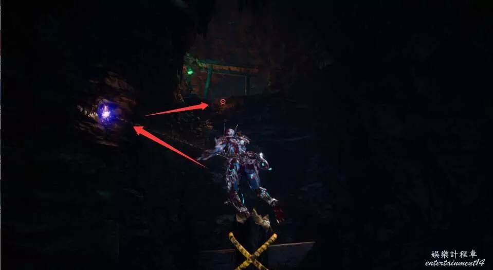 進入大門之後,來到保存點旁利用牆壁到達上方平台。
