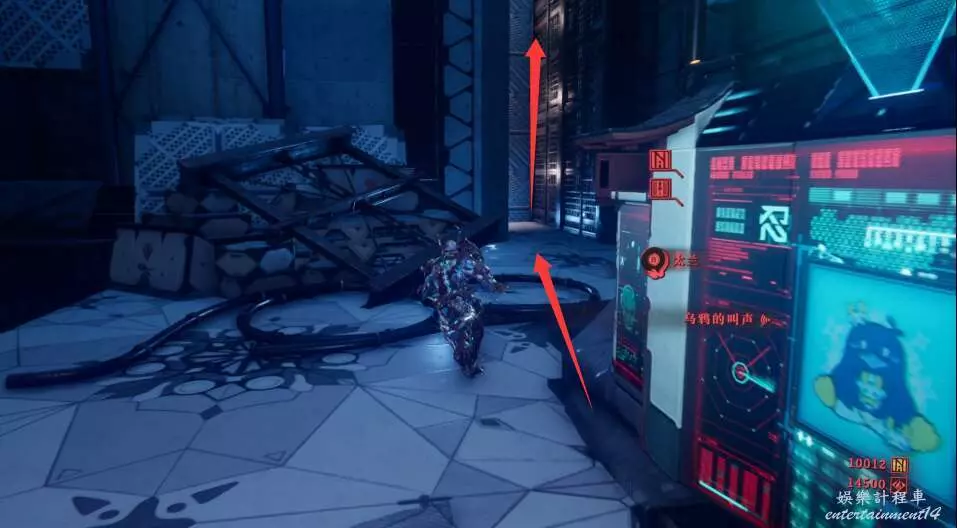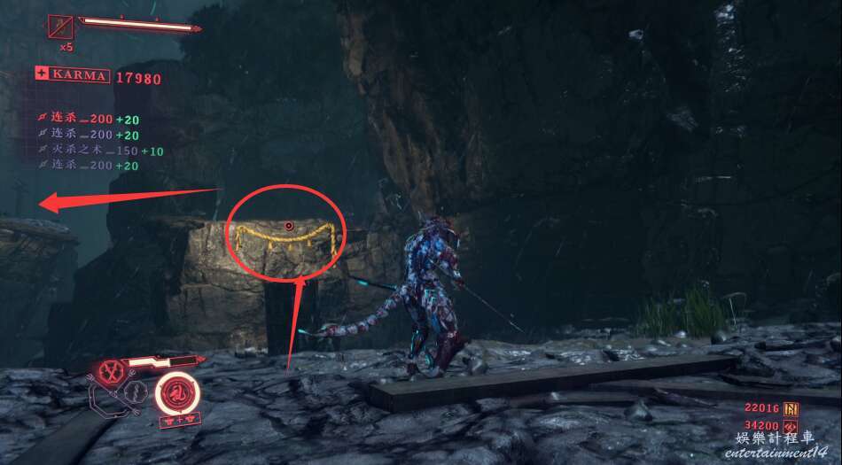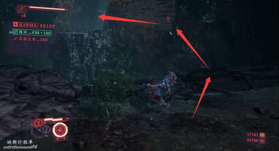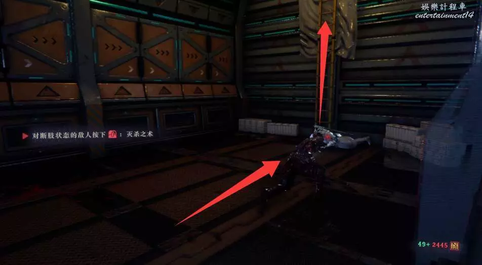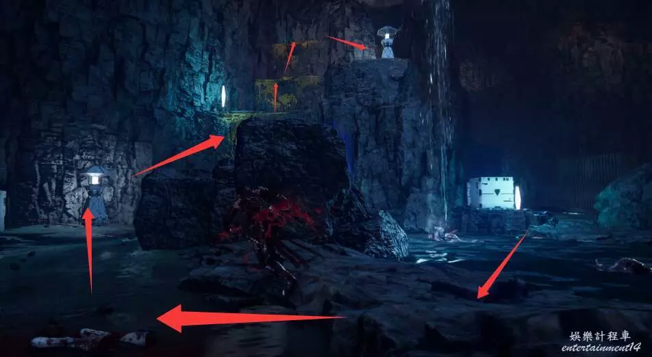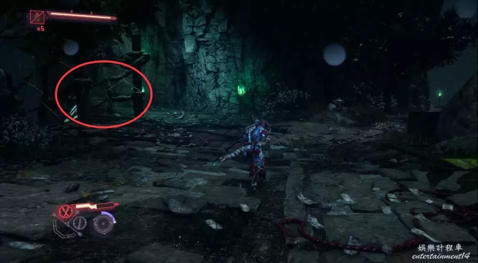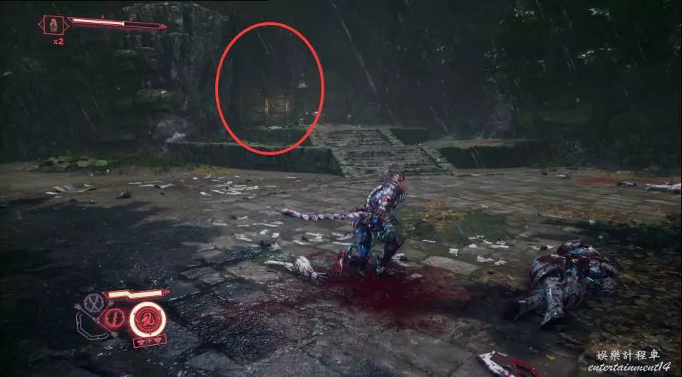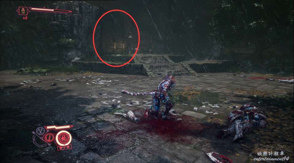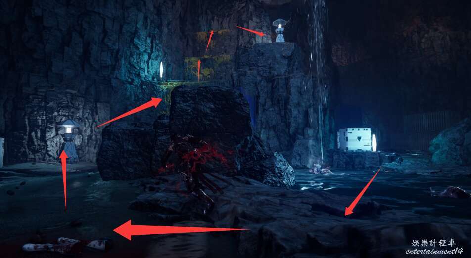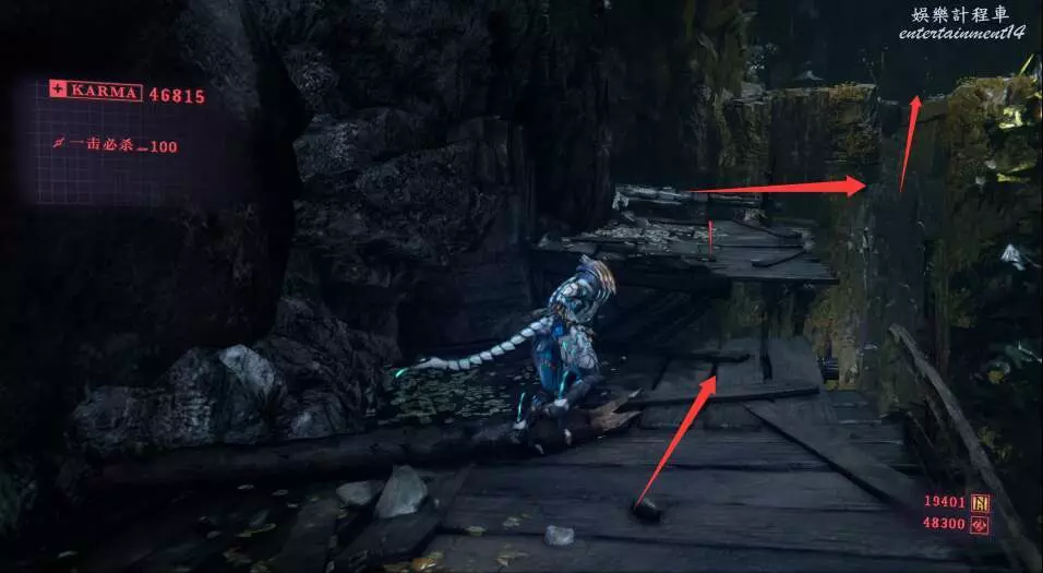 進入大門之後,來到保存點旁利用牆壁到達上方平台。
