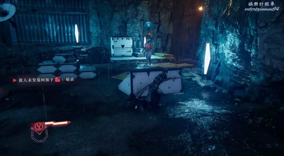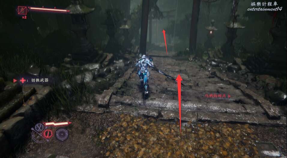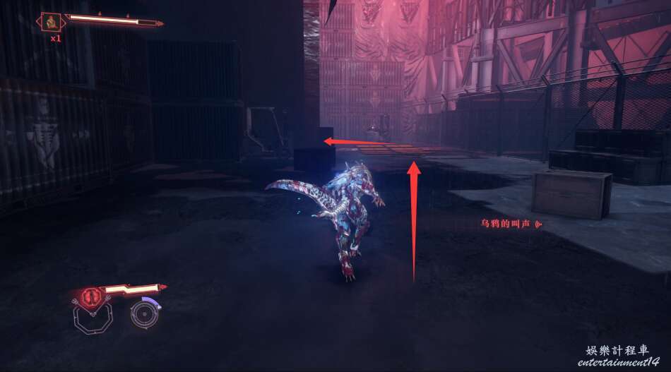 清理掉這些敵人之後,跟著任務指引向前,來到烏鴉和任務點所在處。