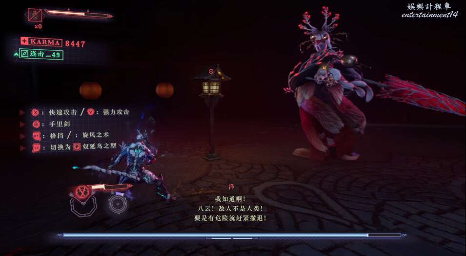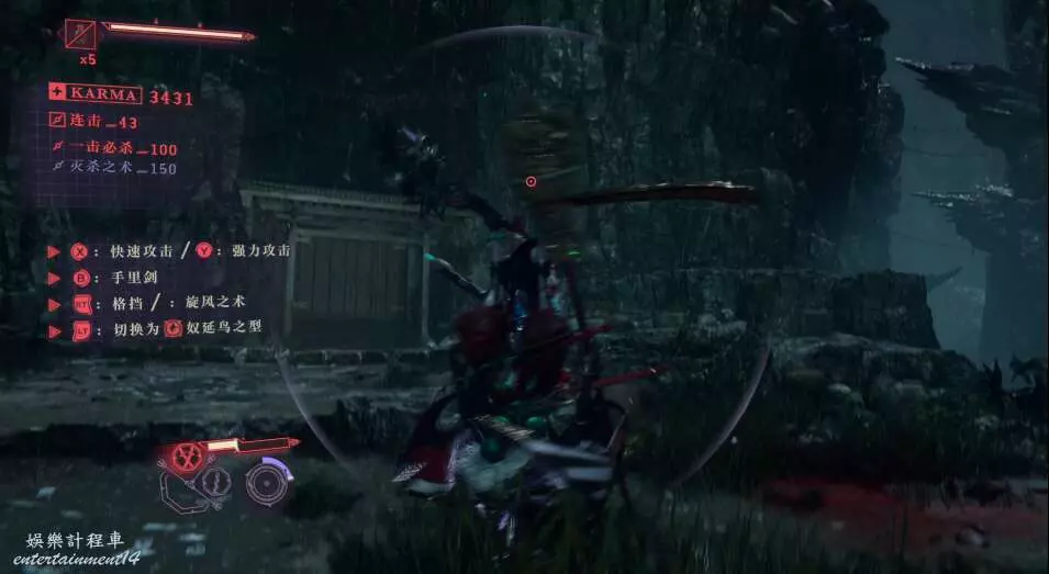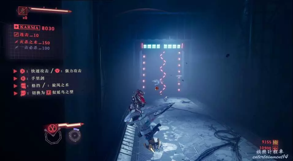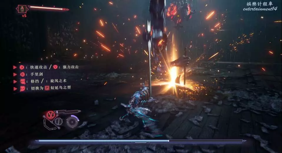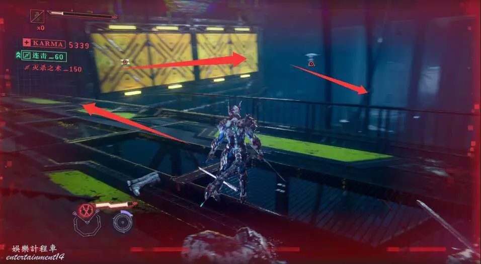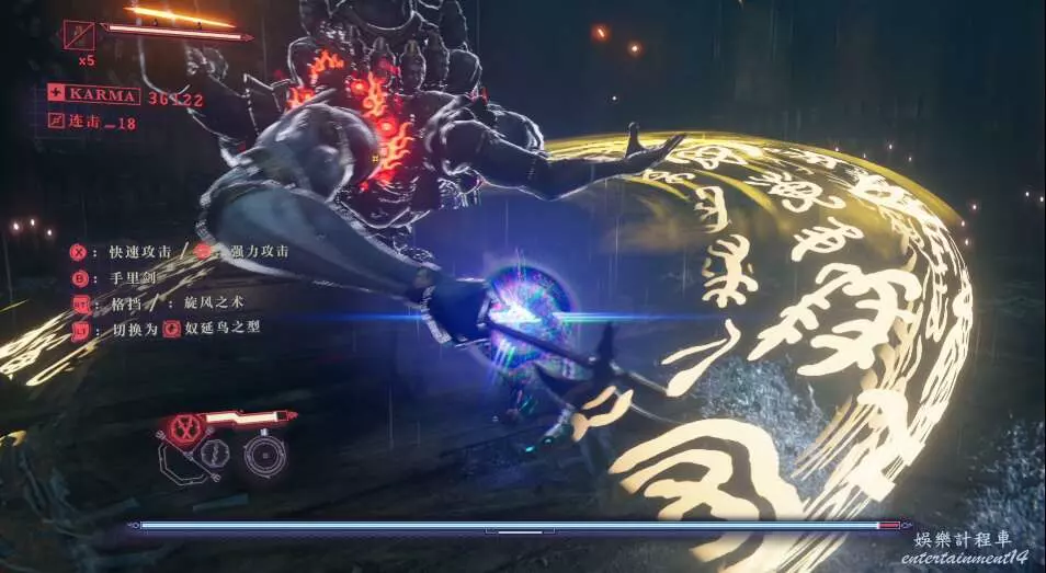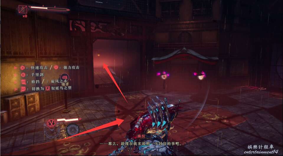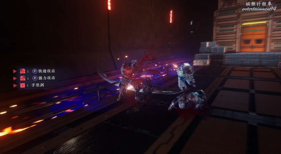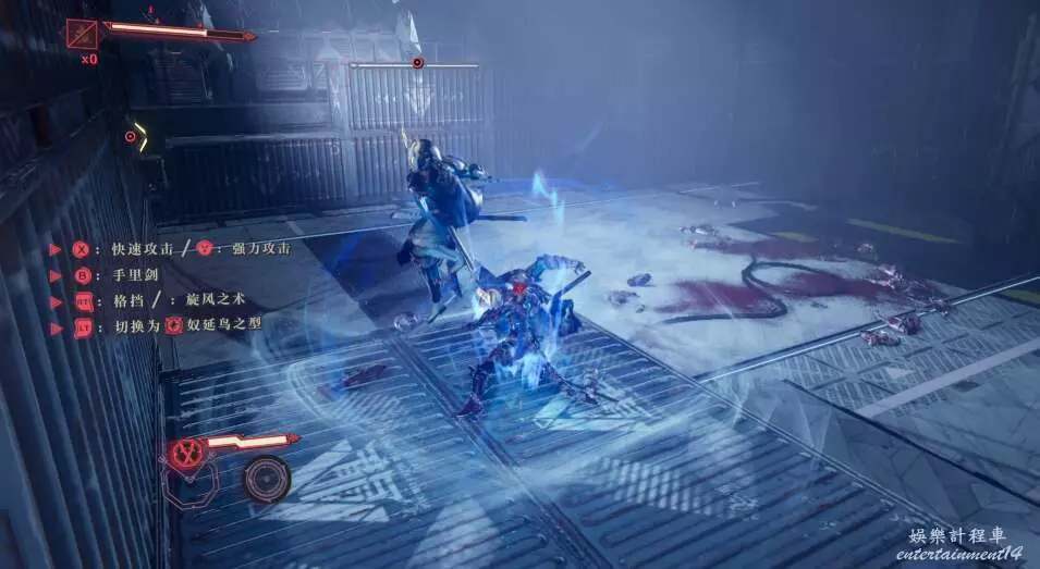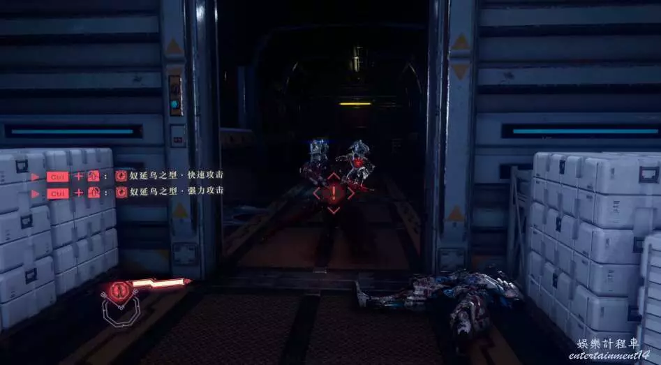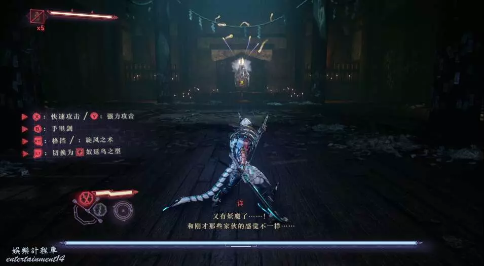 每次開門後,都會出現新的敵人,這也是幫我們更好的去熟悉人物技能,此作中主角擁有兩種攻擊方式,雙刀和太刀,太刀則需要我們按住ctrl然後使用左右鍵才能打出名叫“奴延鳥之型”的招式。