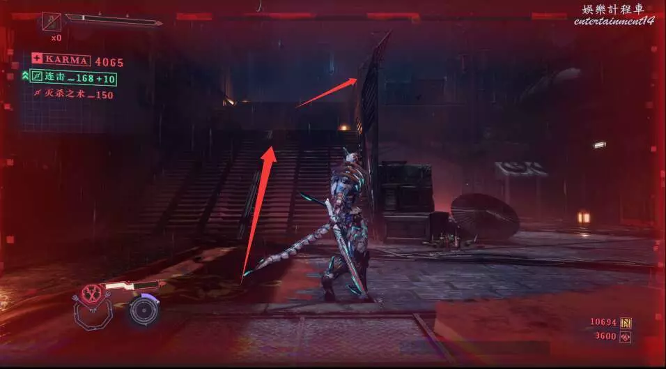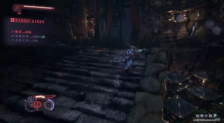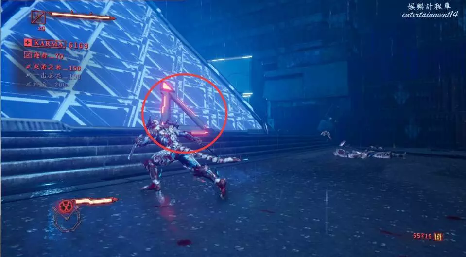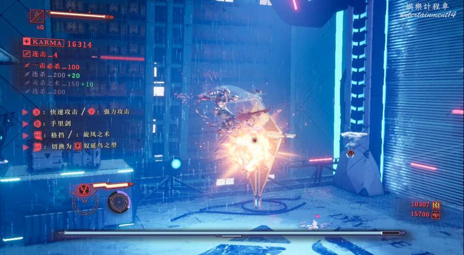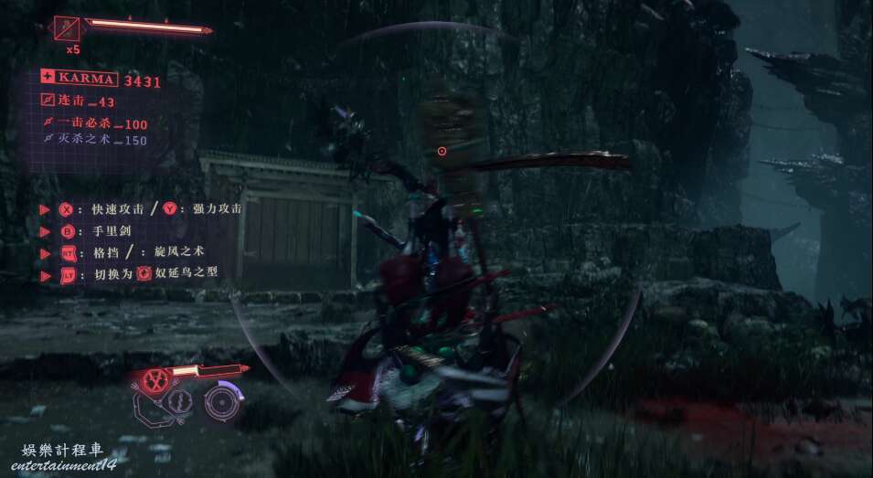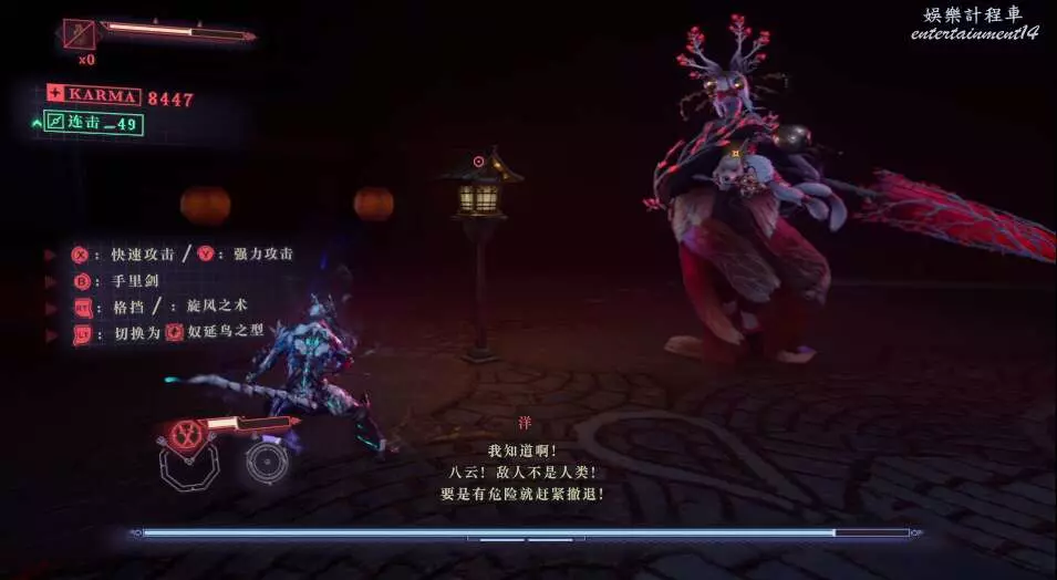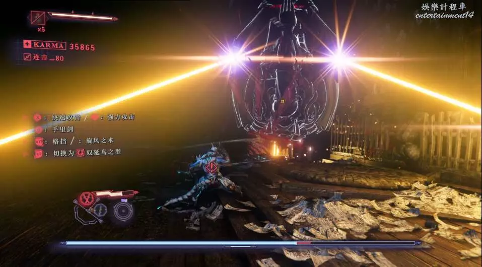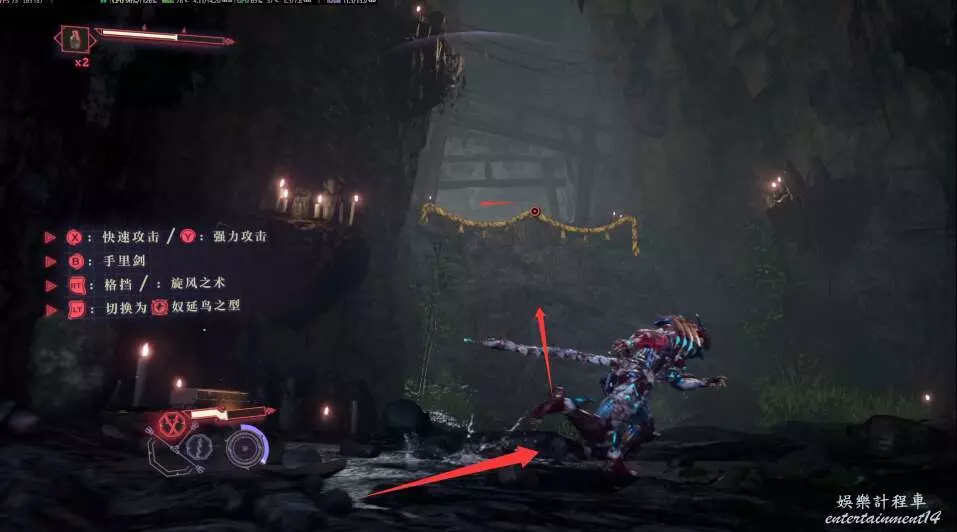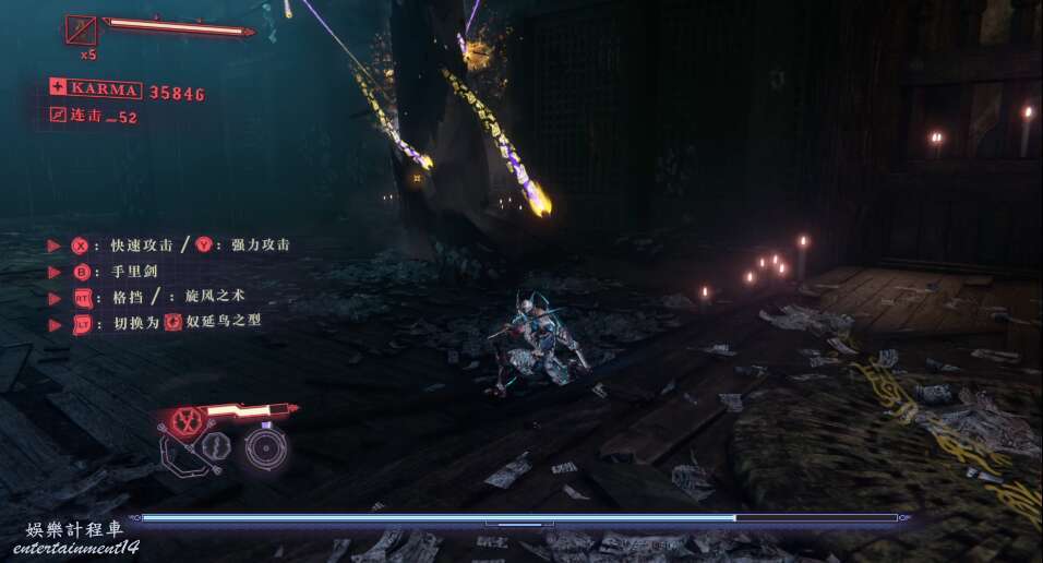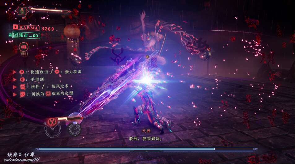 每次開門後,都會出現新的敵人,這也是幫我們更好的去熟悉人物技能,此作中主角擁有兩種攻擊方式,雙刀和太刀,太刀則需要我們按住ctrl然後使用左右鍵才能打出名叫“奴延鳥之型”的招式。