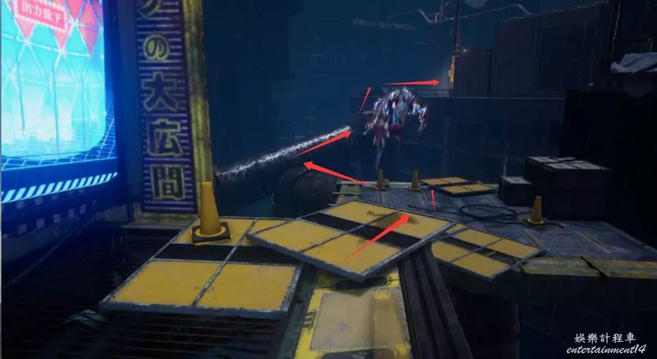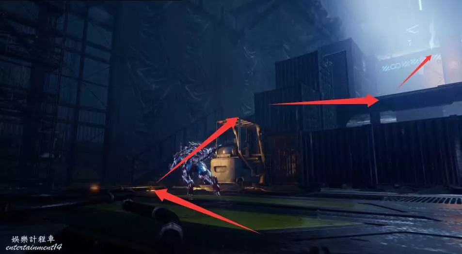 接著沿著道路出發,來到第一個發動機處,解決掉門口騷擾的敵怪。
