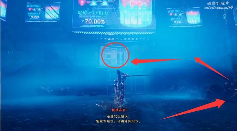 等待劇情中我方駭客黑入敵人資訊,破解大門,然後我們走進去互動,將發電機一刀斬斷。