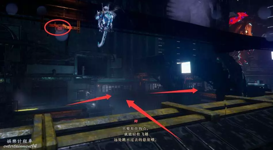 然後在軌道前大跳然後立馬使用鉤鎖。