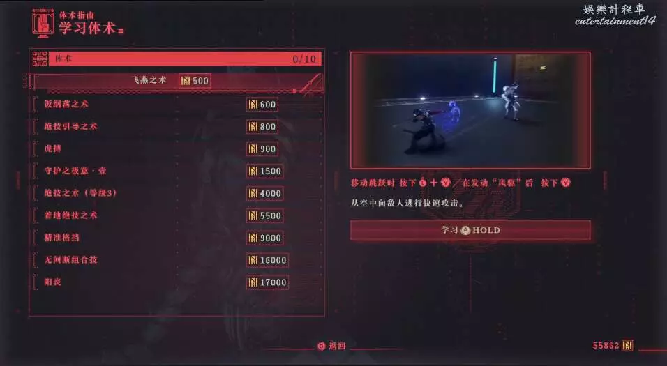 互動後我們可以招來鴉之忍者太蘭,在他這裡我們能通過花費金幣學到新的體術。