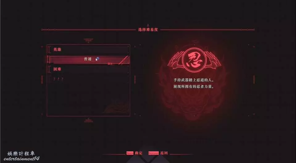 劇情開始,我們先選擇難度,玩家可以優先體驗普通難度,普通難度以上通關之後都會有評分判定,會根據你當前戰鬥次數和是否無傷來給評級。(目前小編還在中忍)