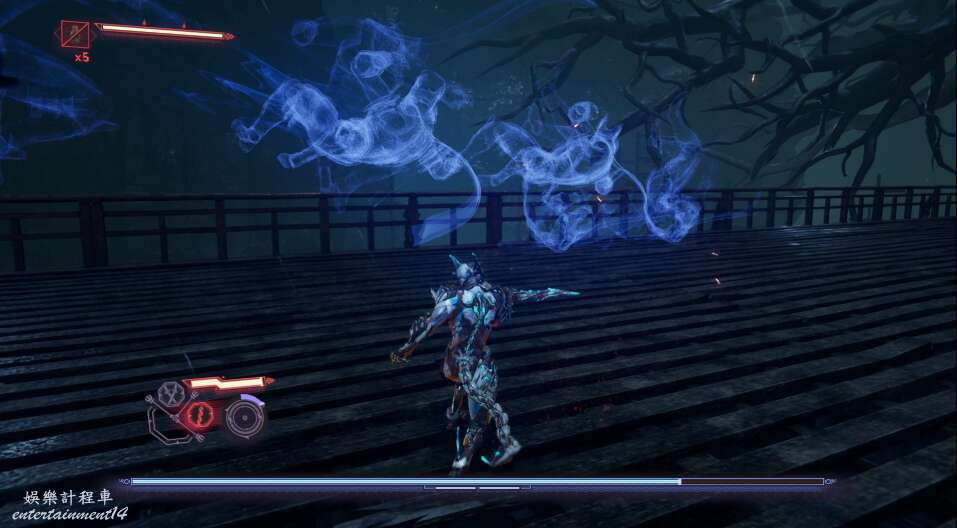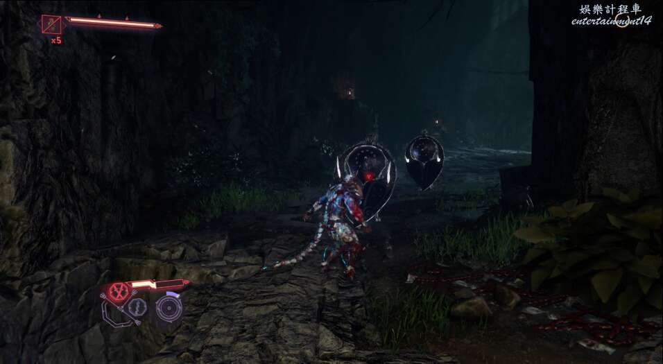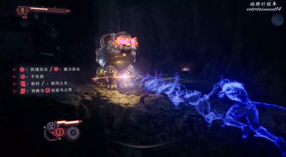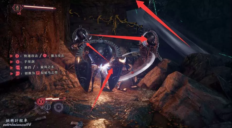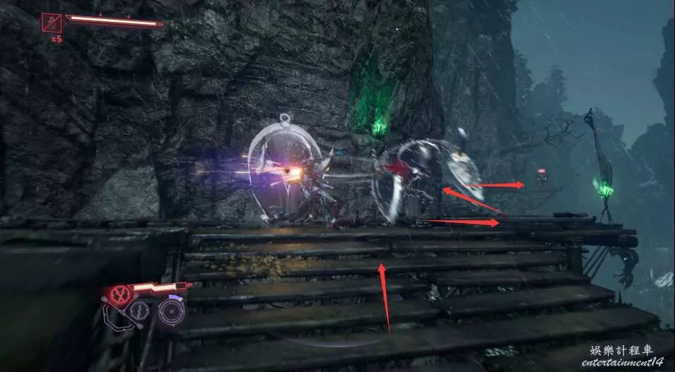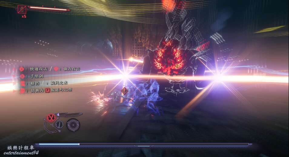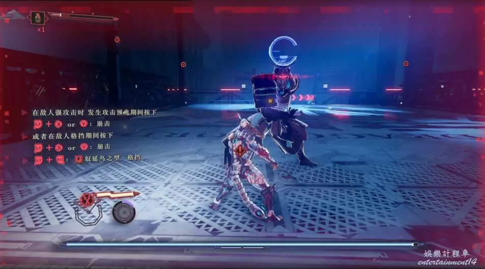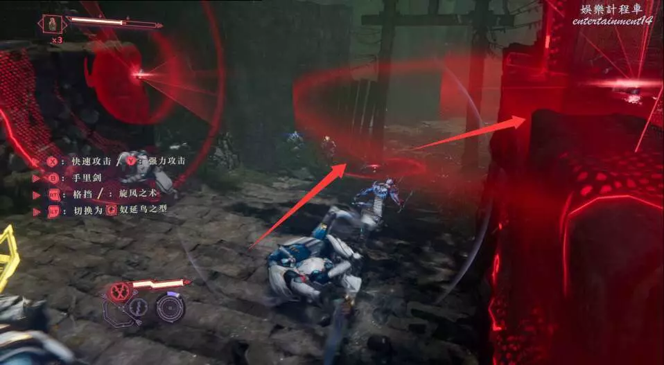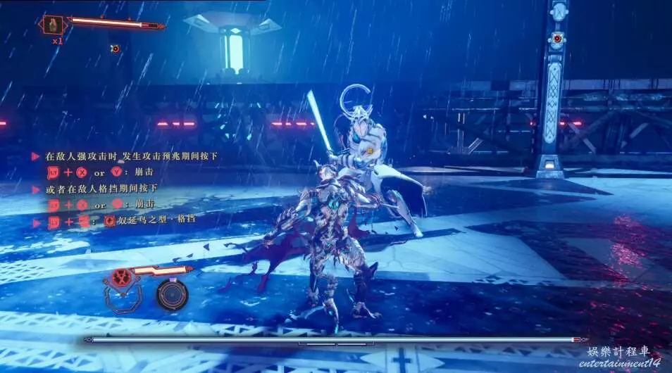 再往前走,又是一波敵怪,多用格擋和閃避,使用強化形態破除敵方硬體。