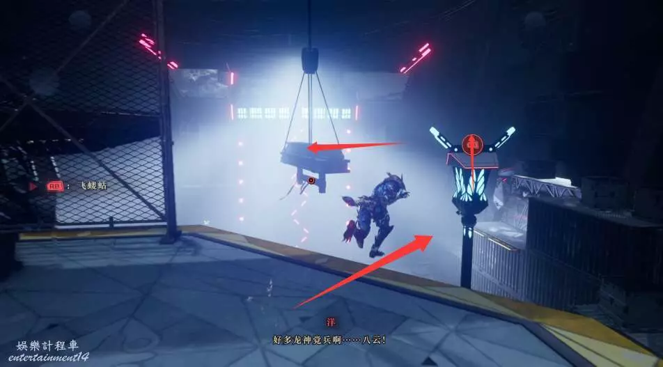 又到達一個駭客檢查點後,獲得新的道具,飛螻蛄,可以在平台之間利用鉤鎖移動。