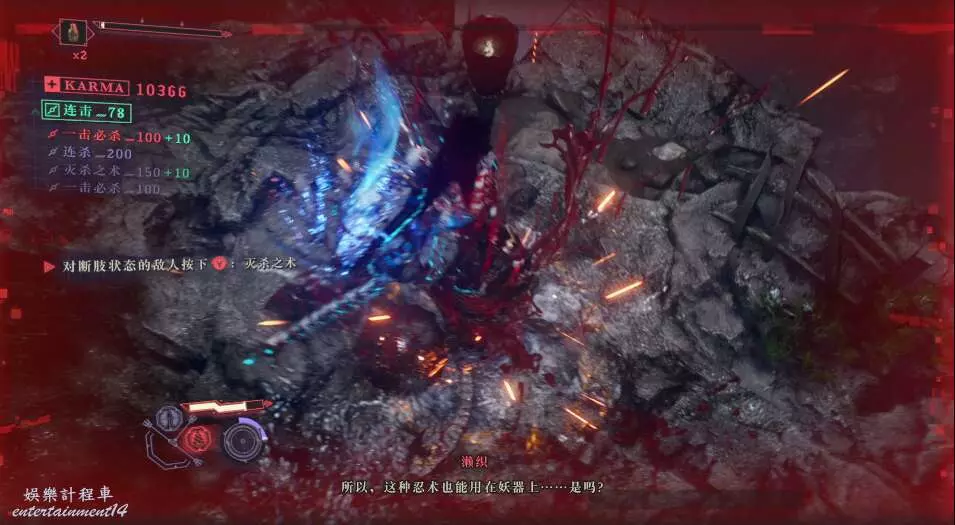 當我們用普通攻擊進攻地方時,我們會在敵人的關節處留下印記,若敵人此時出現“斷肢”,同時我們使用右鍵,會發動“滅殺之術”終結敵人。