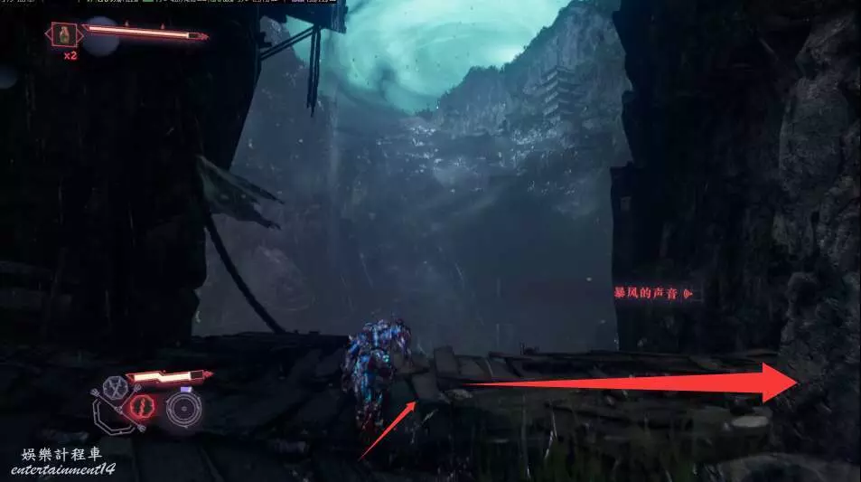 到達懸崖口,被暴風阻攔,選擇向右出發。