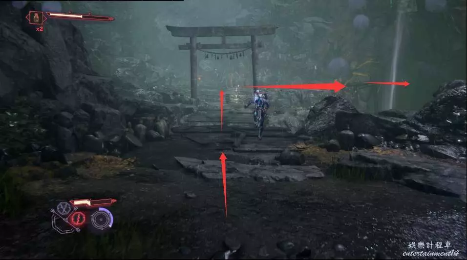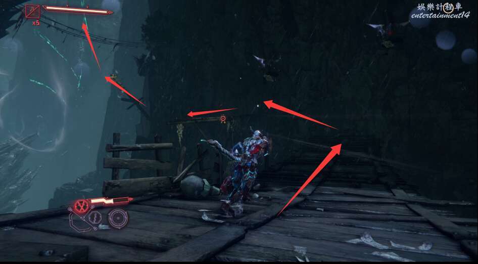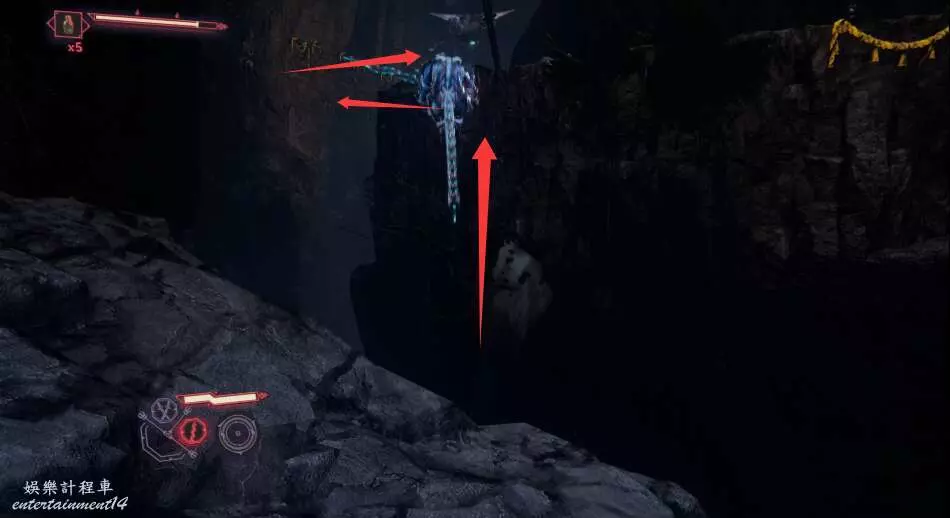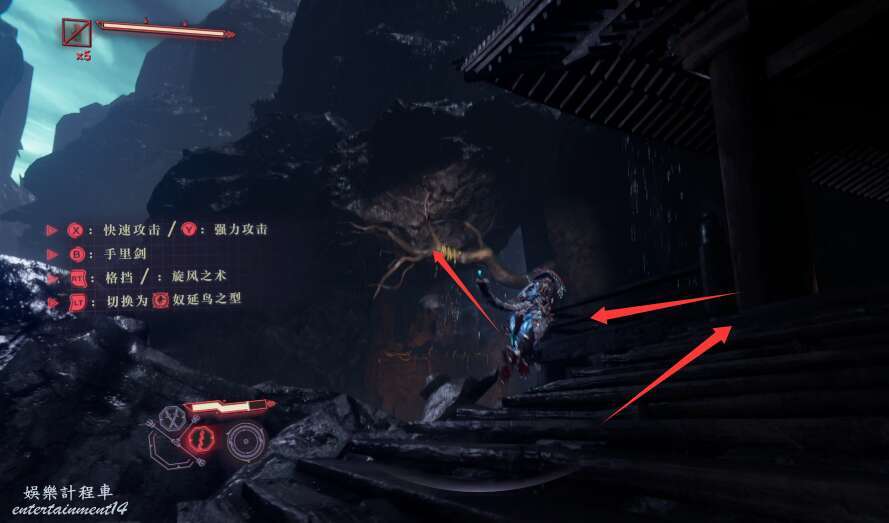 出門後往右側直行,借助鉤鎖到達平台。