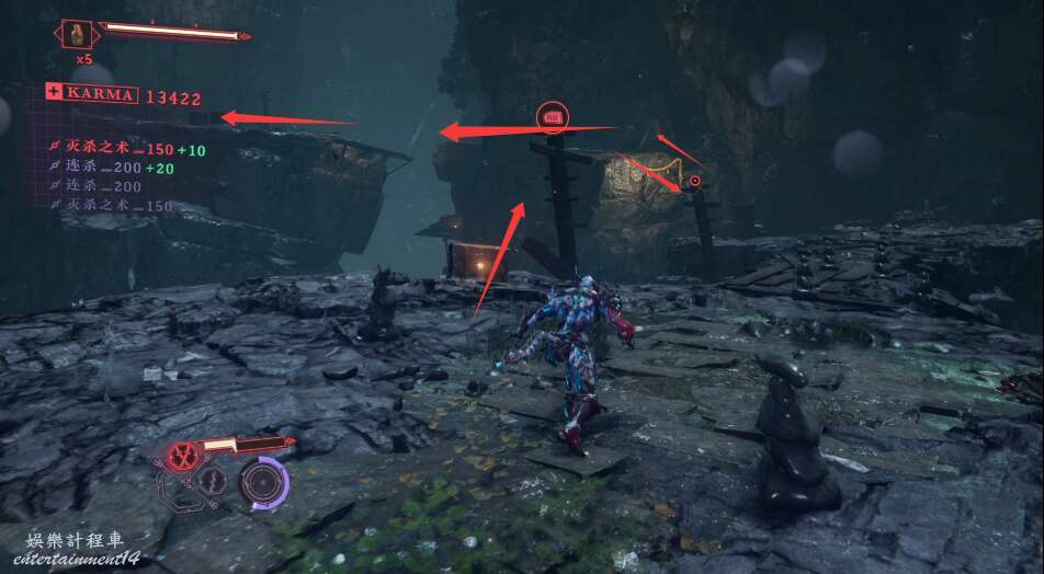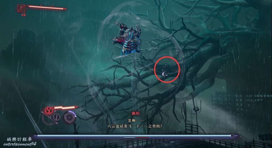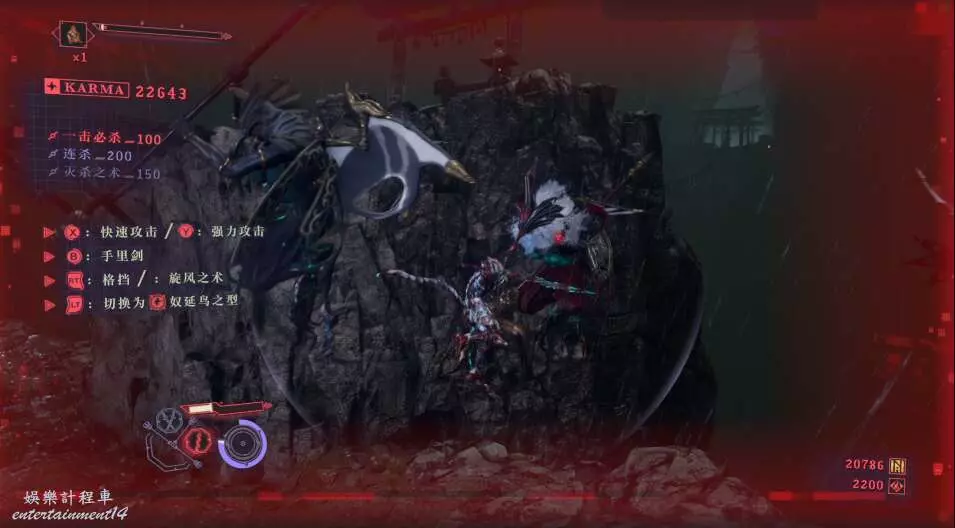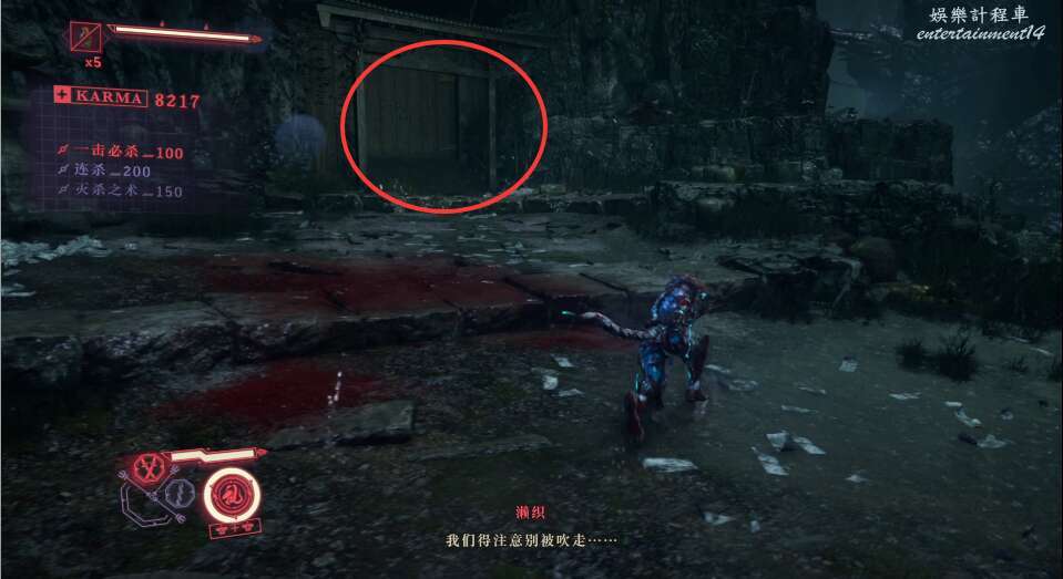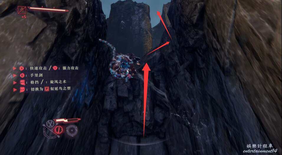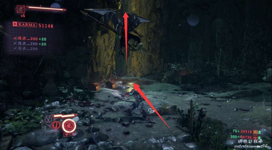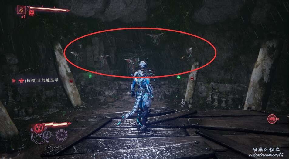 建議這邊優先將飛行敵怪清理,可以通過頻繁使用手裡劍擊落飛行敵人。