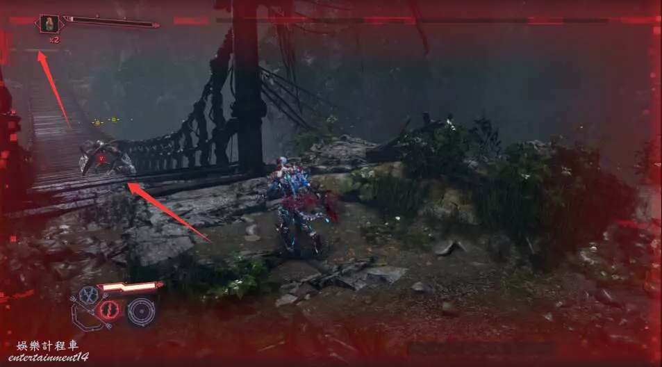 前方下面是大量敵人,建議準備大量回血藥,同時多使用鉤鎖點到達高處躲避圍剿。