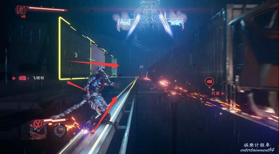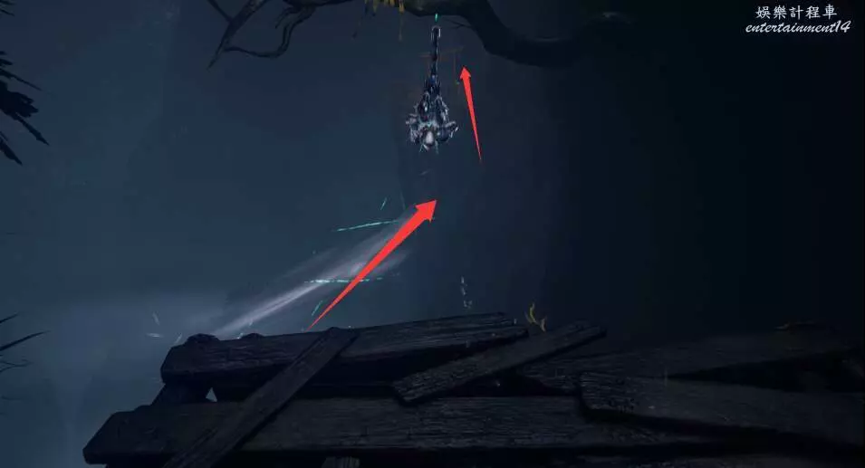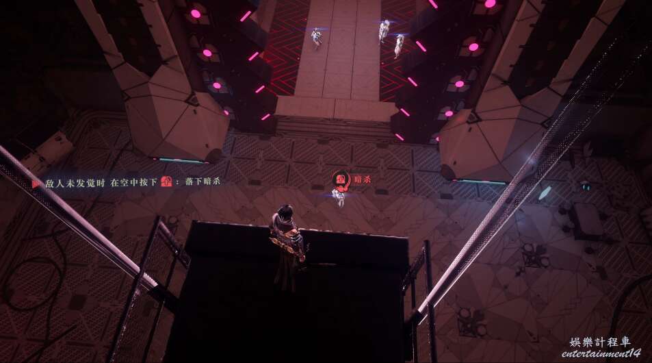 離開軌道之後,向下跳躍,對底下的敵怪使用暗殺。