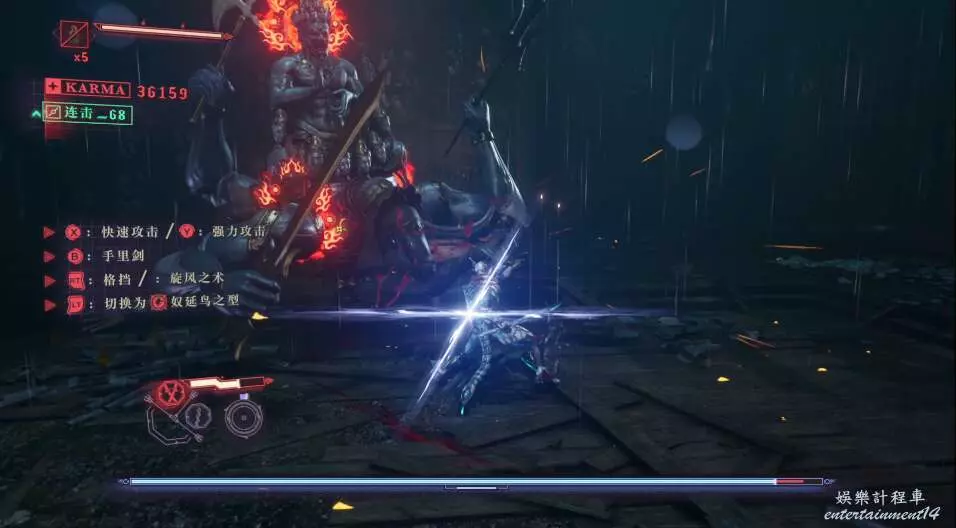 像這些強悍的boss,我們正常形態下的攻擊會被格擋,需要我們使用奴延鳥之型去對抗,在此形態下才會使對面破防。