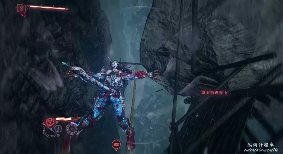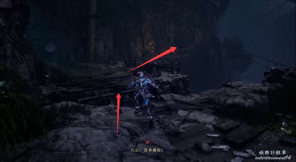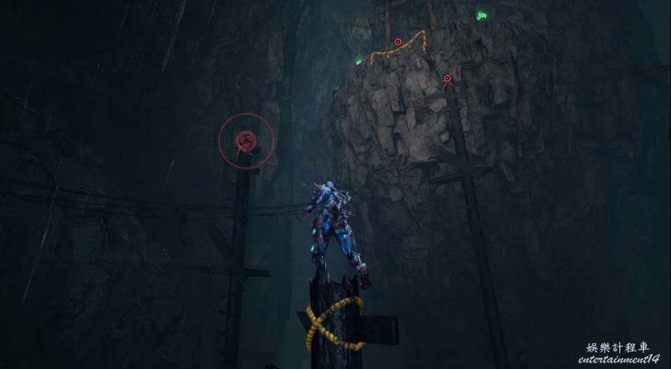 在隨後,我們的道路會被巨石破壞,然後急速墜落,此時注意滑索位置。