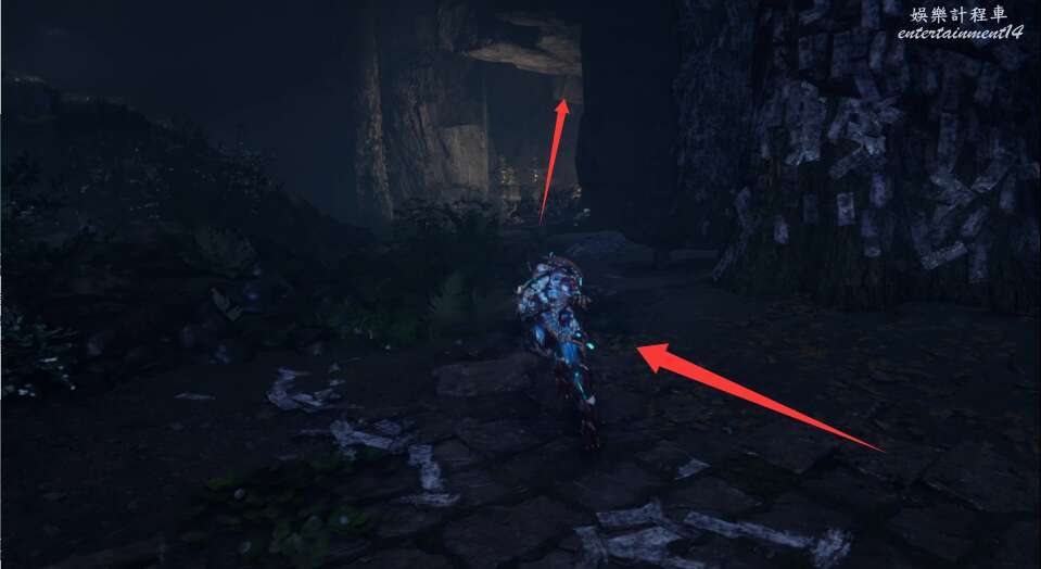 然後通過洞穴直走。